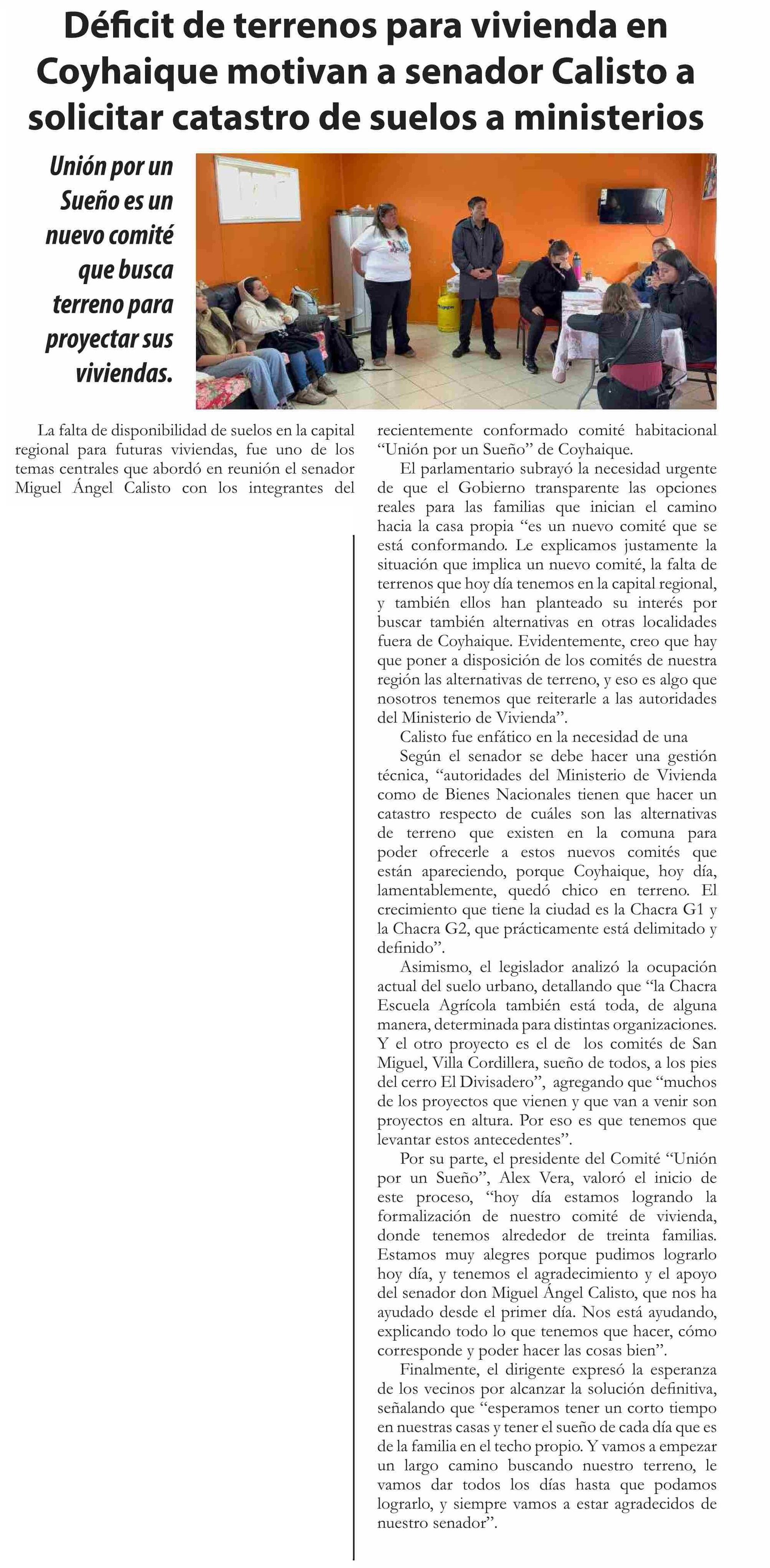 Déficit de terrenos para vivienda en Coyhaique motivan a senador Ca listo a solicitar catastro de suelos a ministerios
