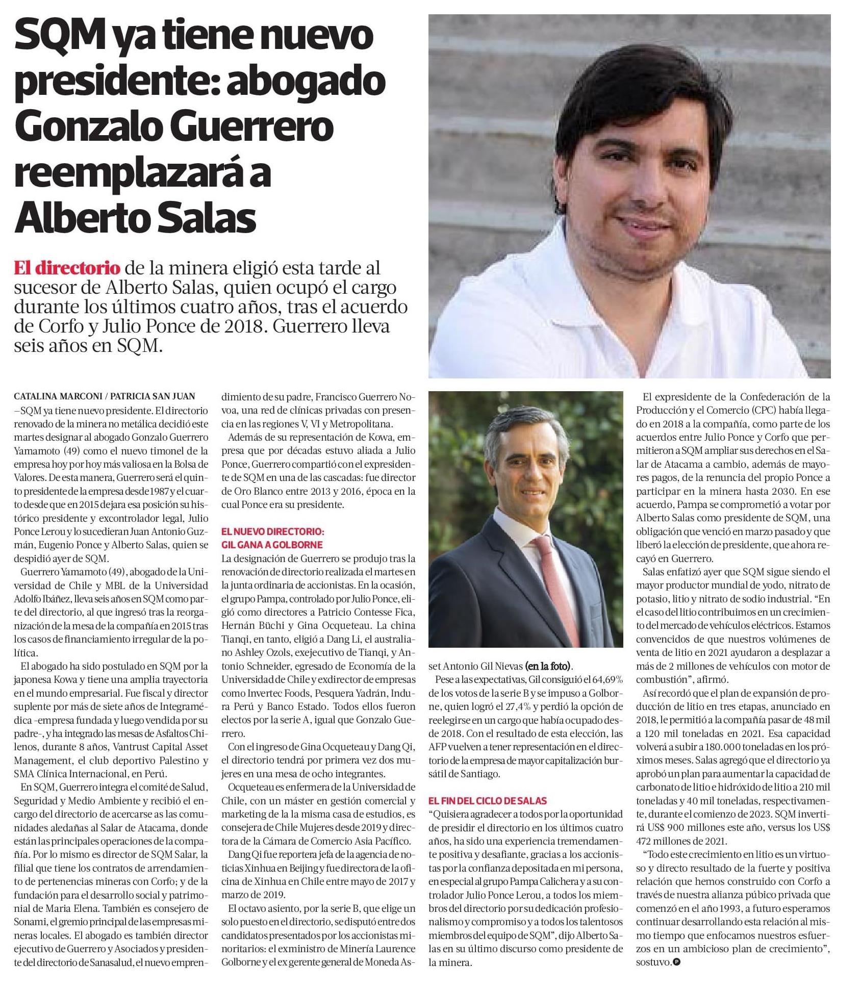 SQM ya tiene nuevo presidente: abogado Gonzalo Guerrero reemplazará a Alberto Salas
