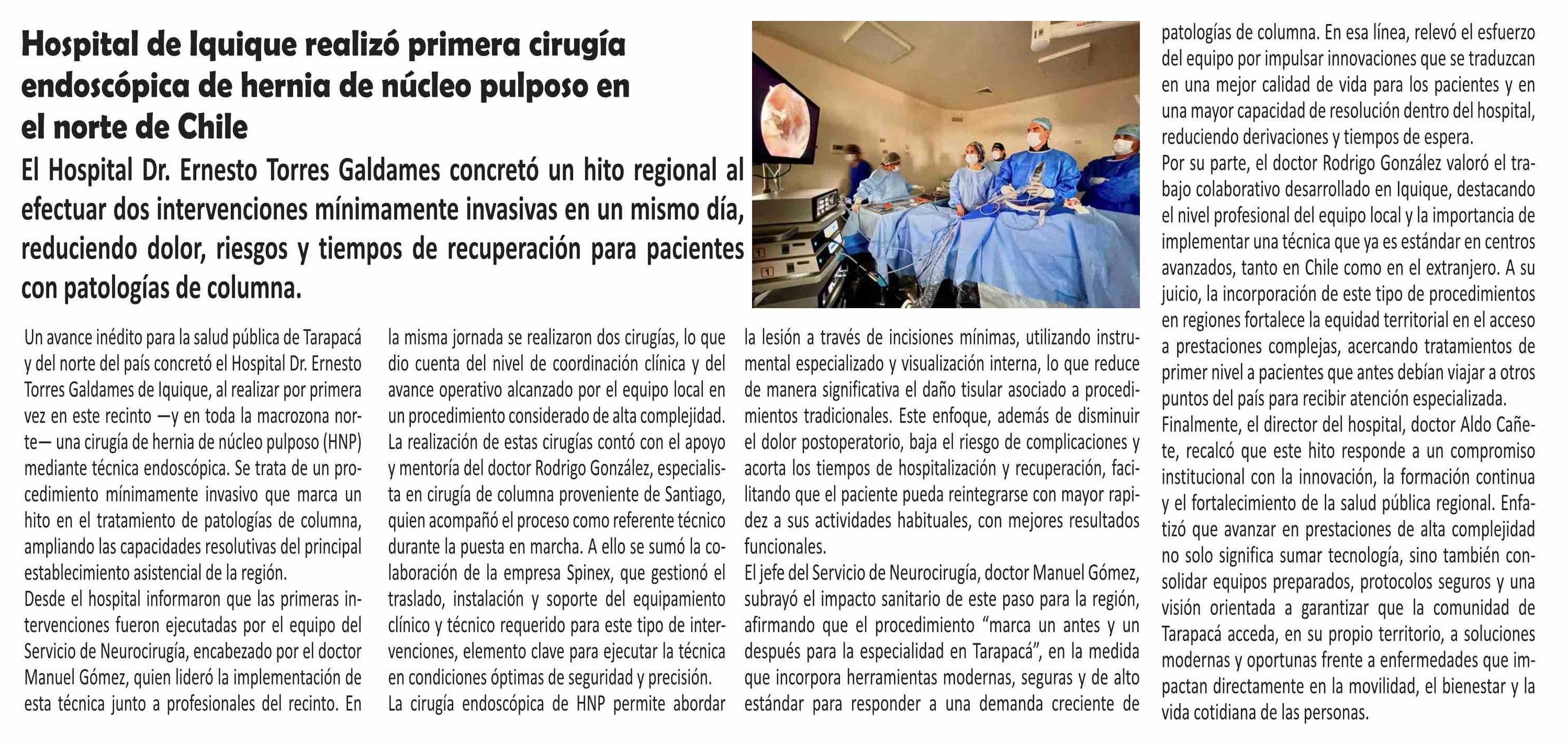 Hospital de Iquique realizó primera cirugía
