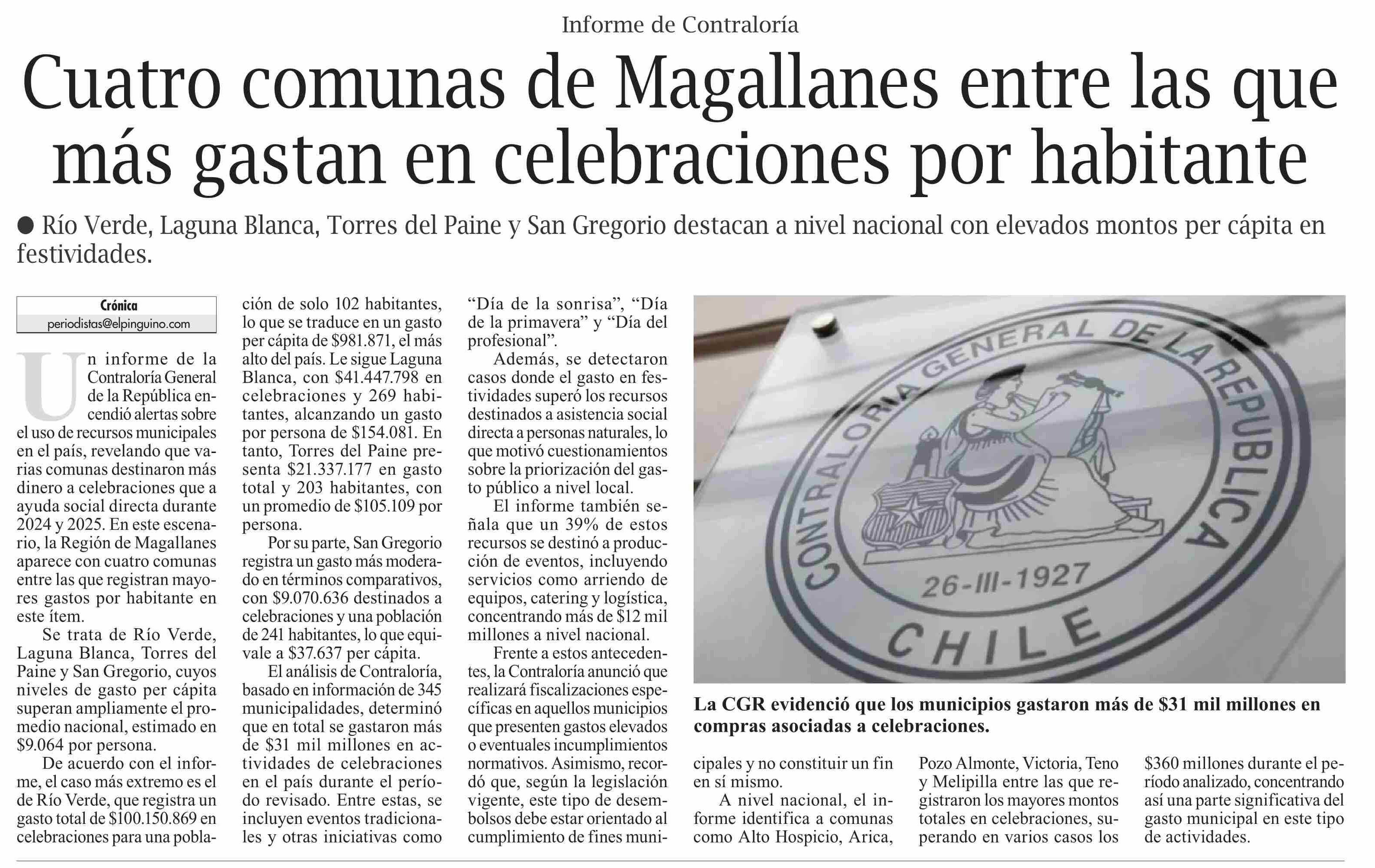 Cuatro comunas de Magallanes entre las que más gastan en celebraciones por habitante