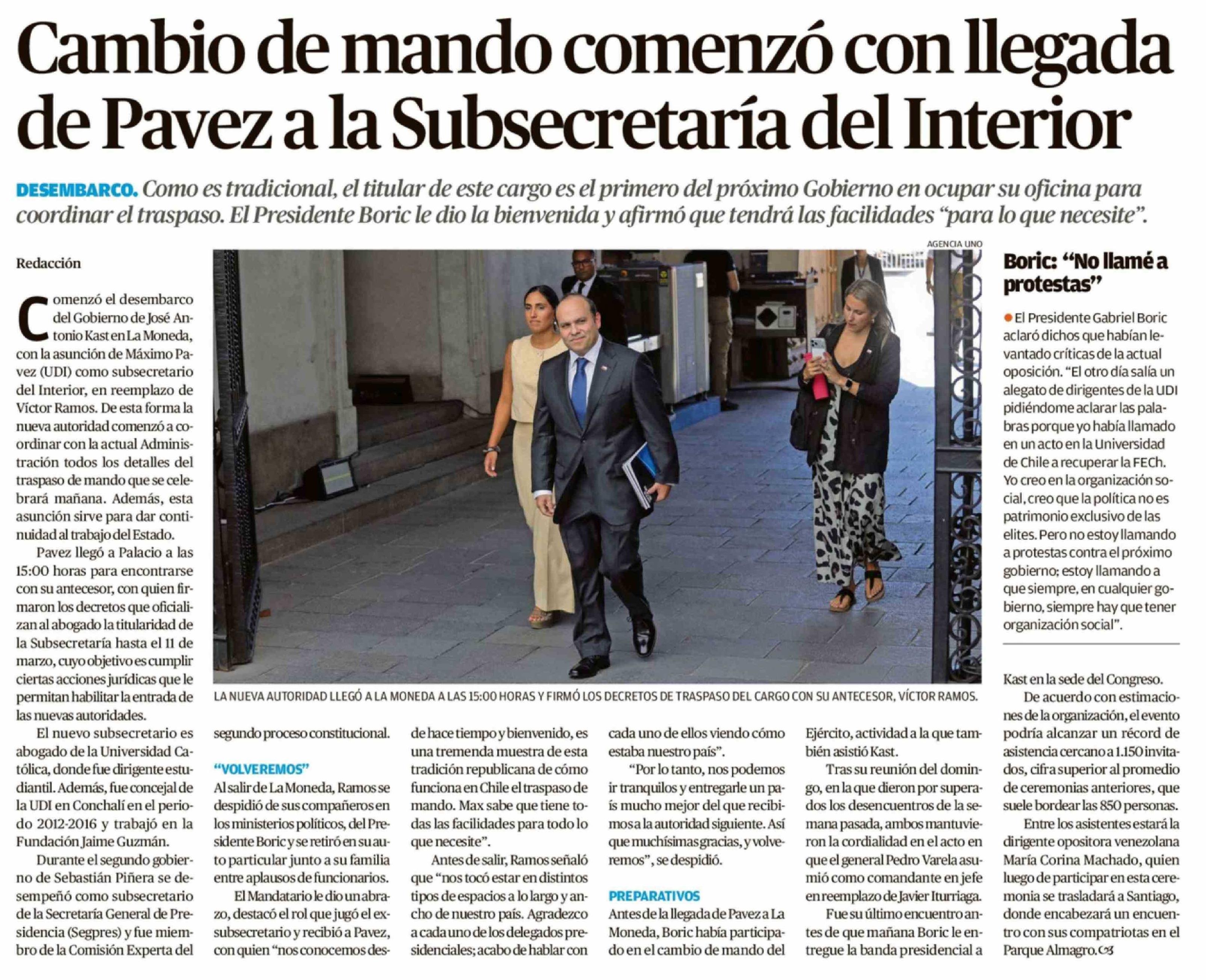 Cambio de mando comenzó con llegada de Pavez a la Subsecretaría del Interior