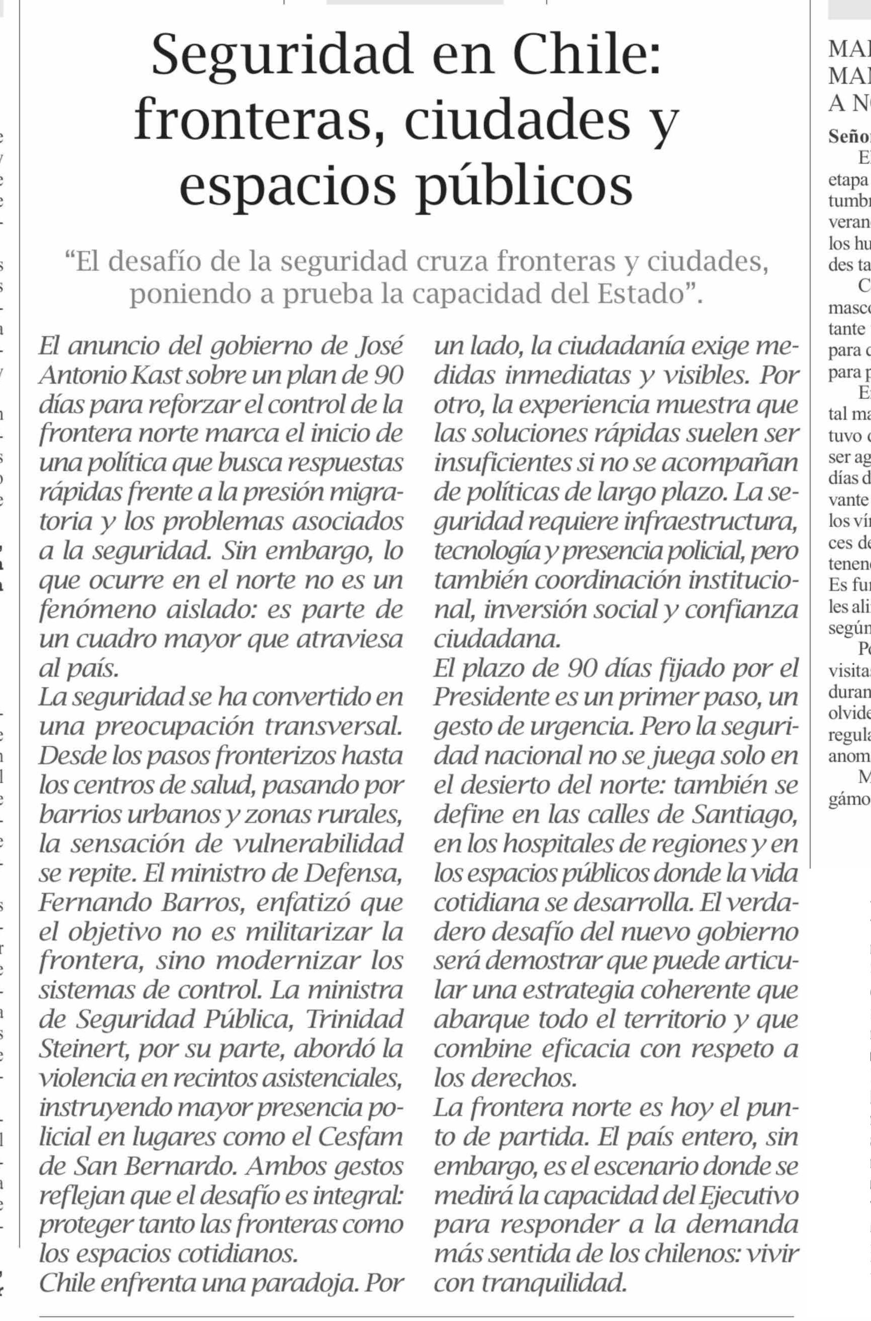 EDITORIAL: Seguridad en Chile, fronteras, ciudades y espacios públicos