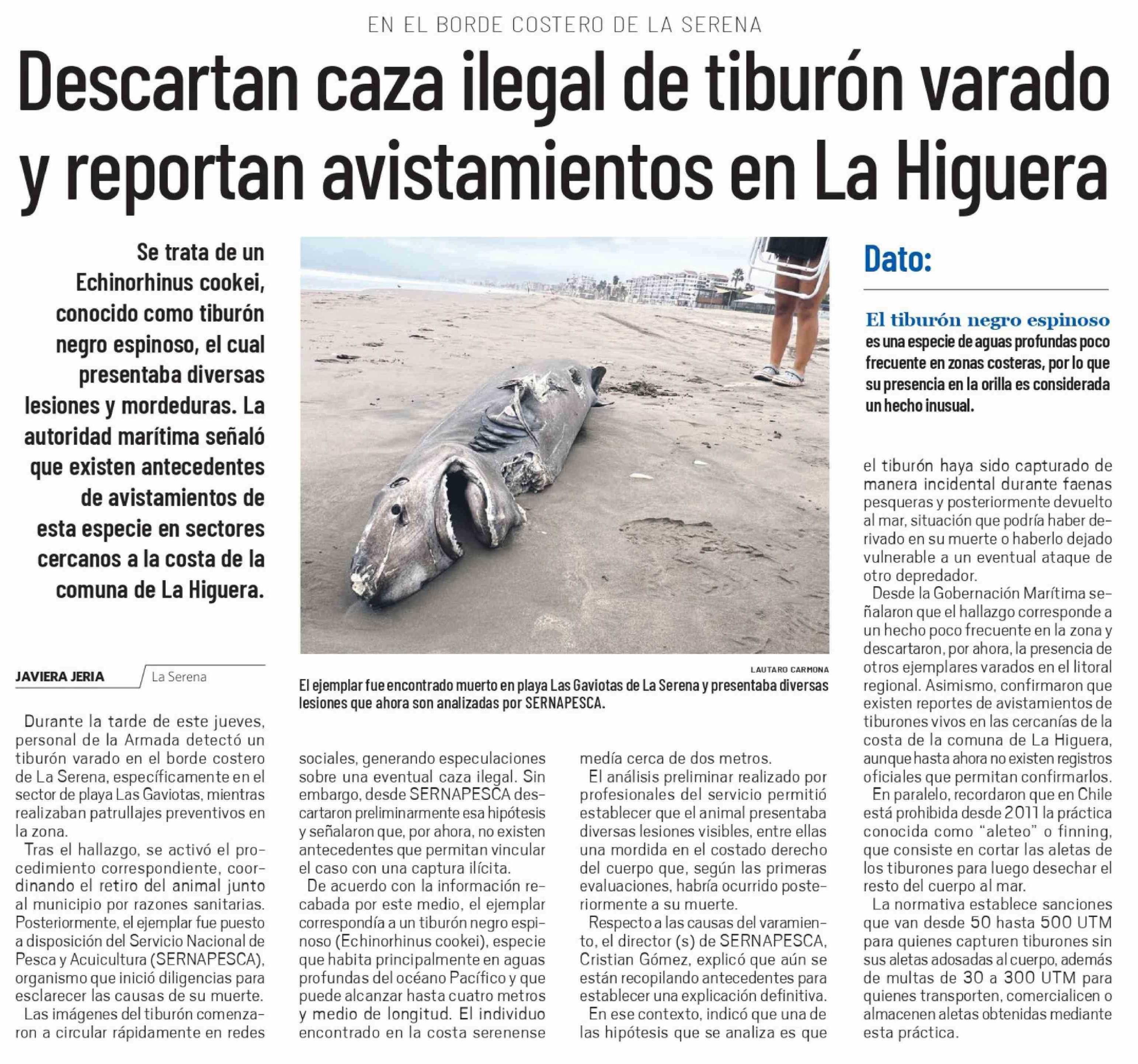 Descartan caza ilegal de tiburón varado y reportan avistamientos en La Higuera