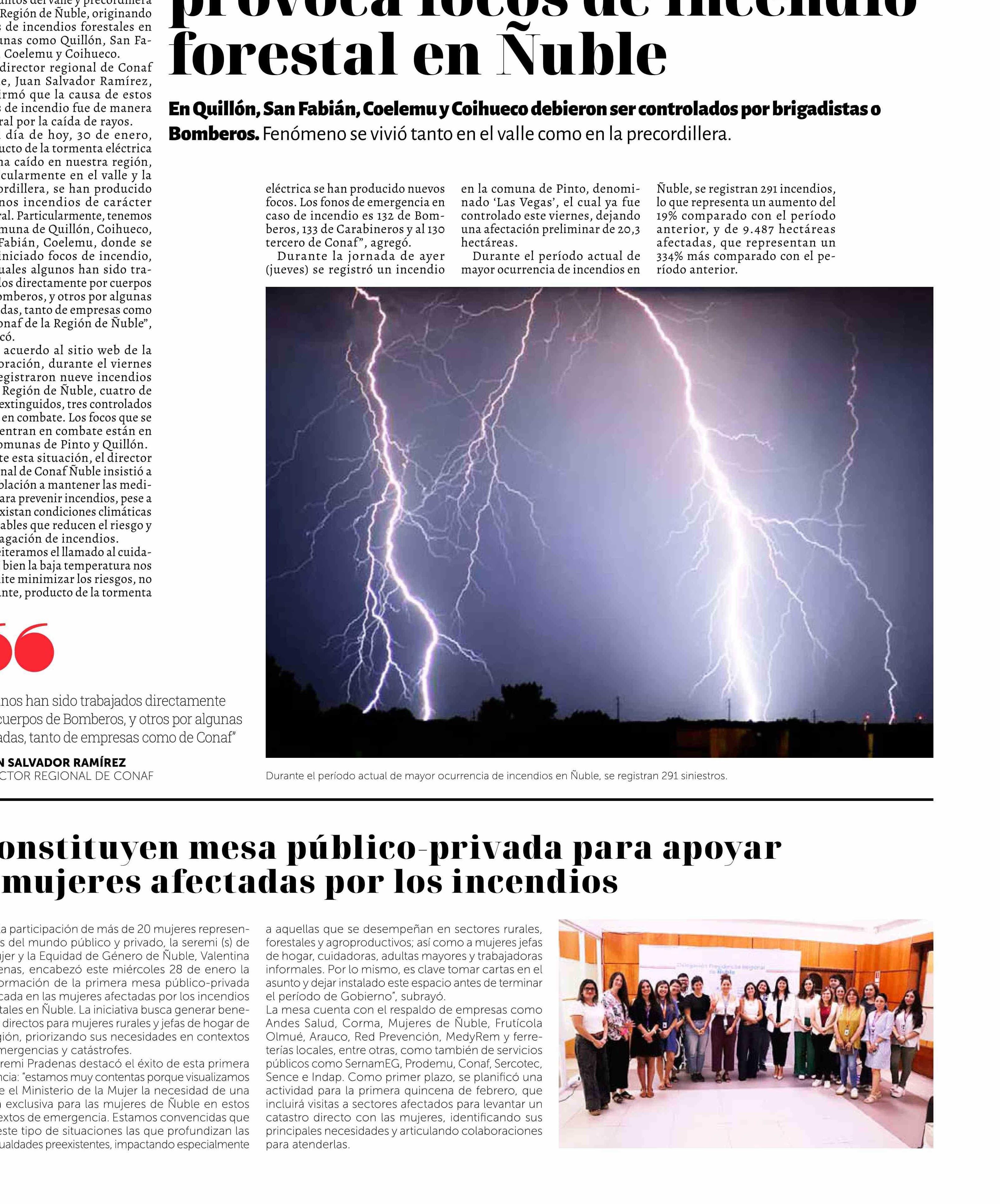 Tormenta eléctrica provoca focos de incendio forestal en Ñuble