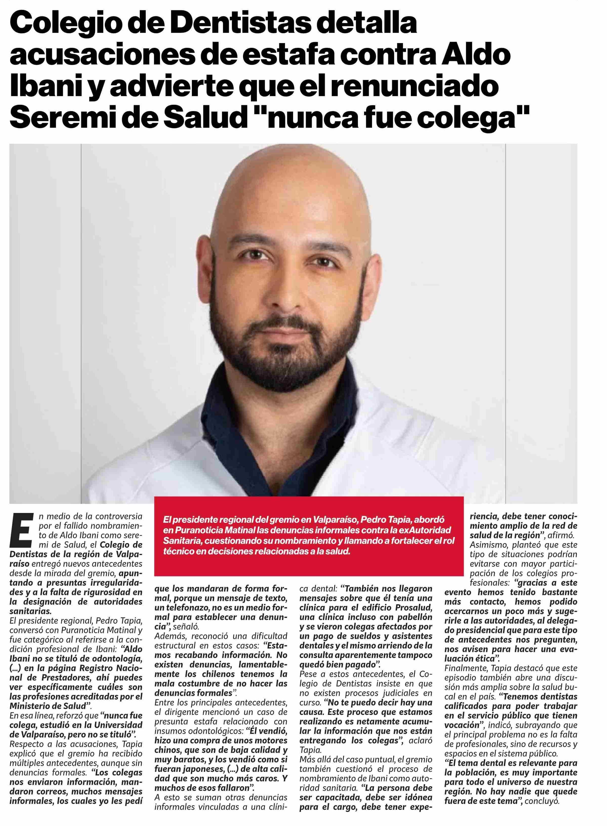 Colegio de Dentistas detalla acusaciones de estafa contra Aldo Ibani y advierte que el renunciado Seremi de Salud "nunca fue colega”