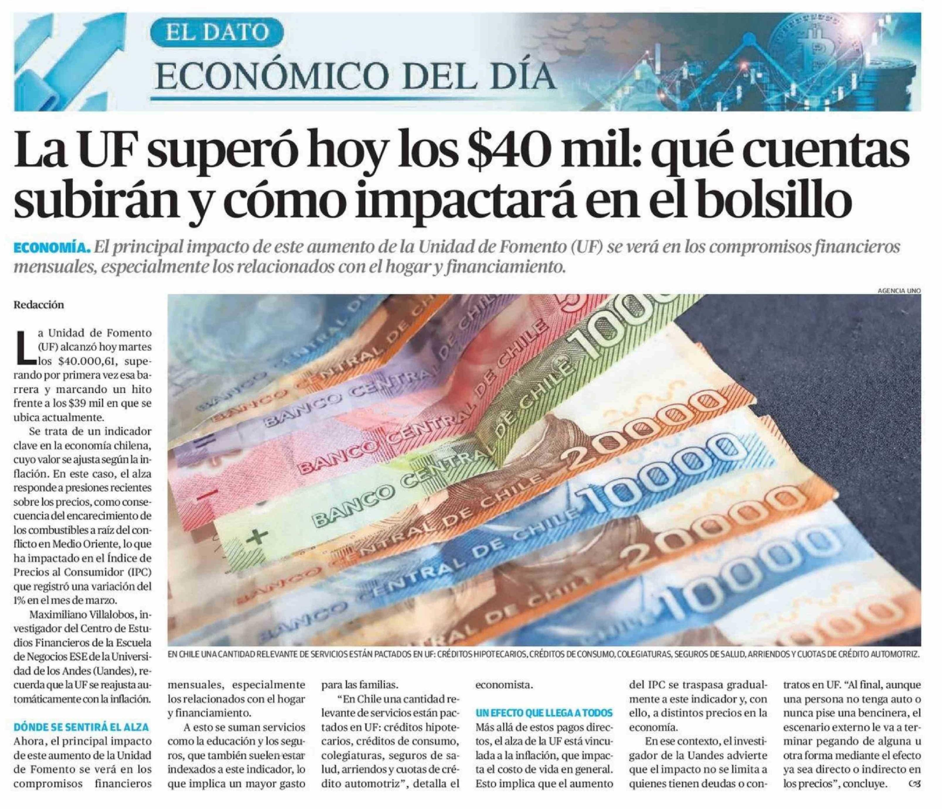 La UF superó hoy los $40 mil: qué cuentas subirán y cómo impactará en el bolsillo