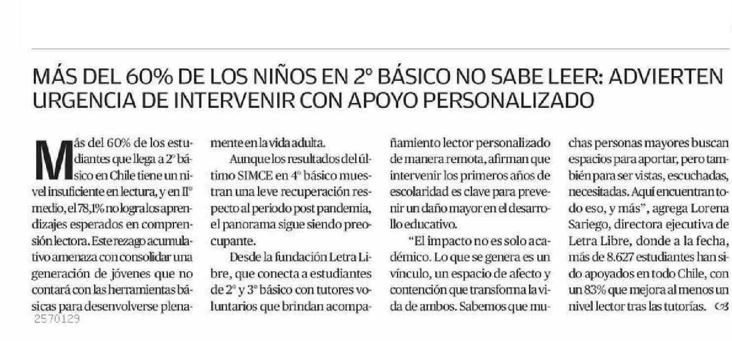 MÁS DEL 60% DE LOS NINOS EN 2” BÁSICO NO SABE LEER: ADVIERTEN URGENCIA DE INTERVENIR CON APOYO PERSONALIZADO