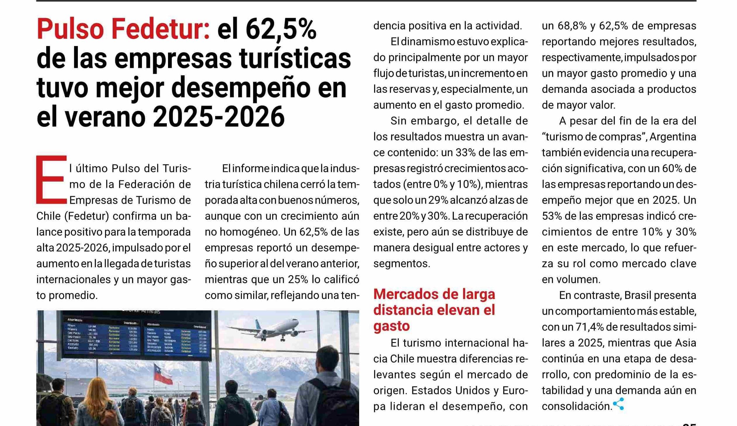 Pulso Fedetur: el 62,5% de las empresas turísticas tuvo mejor desempeño en el verano 2025-2026