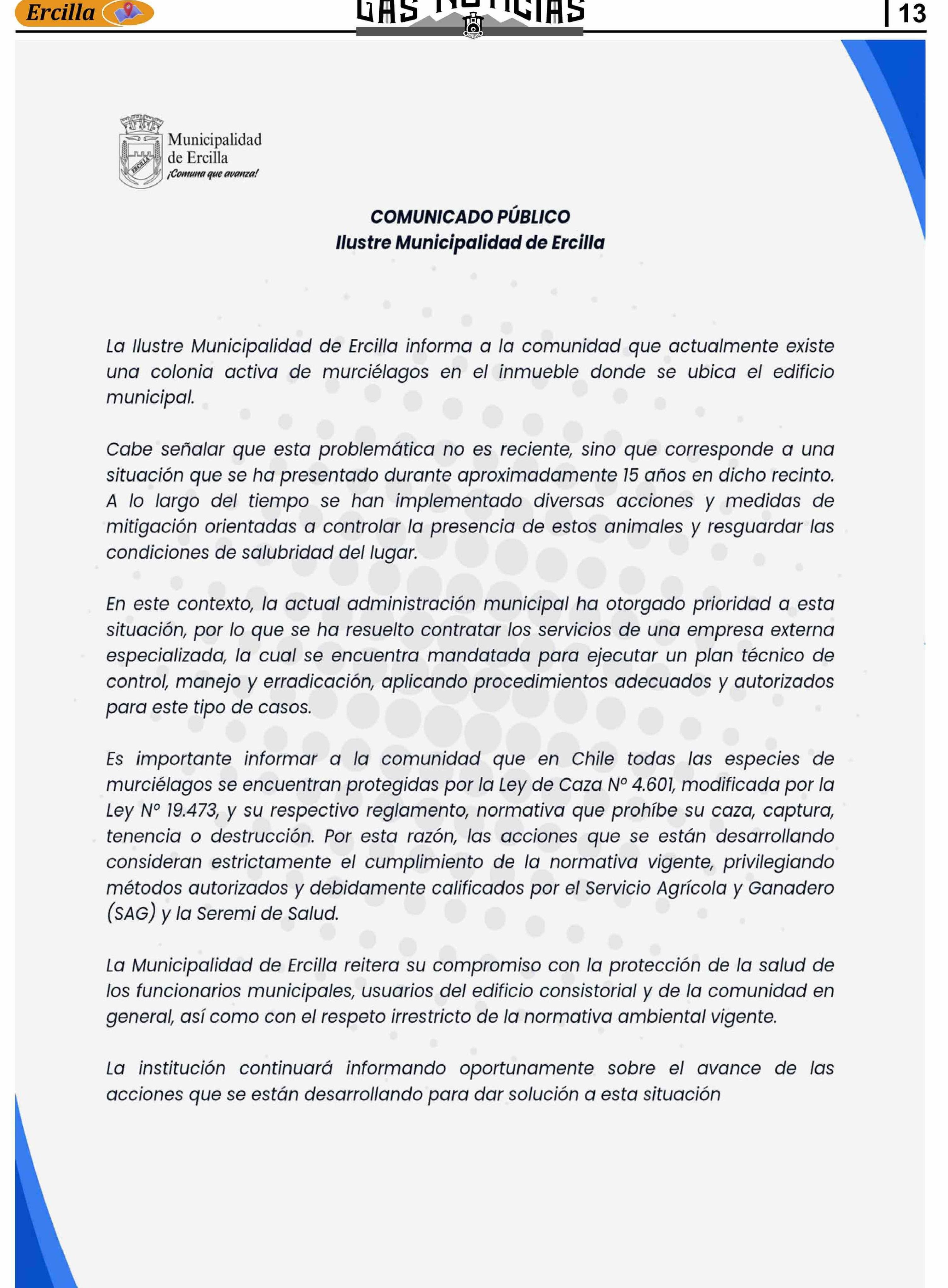 Extractos: COMUNICADO PÚBLICO Ilustre Municipalidad de Ercilla
