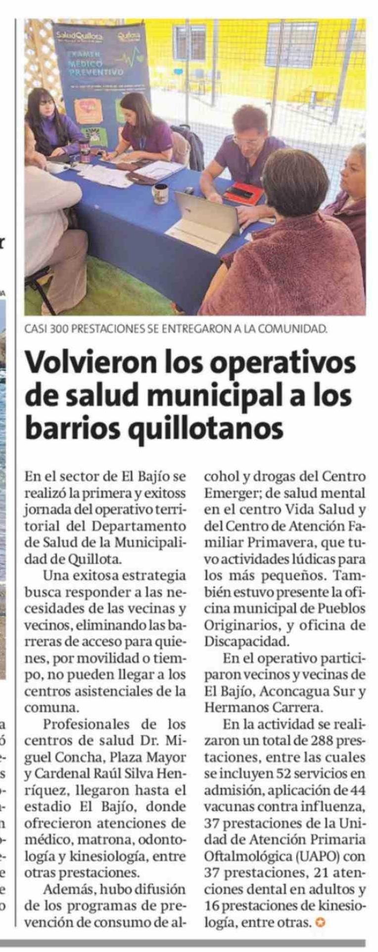 Volvieron los operativos de salud municipal a los barrios quillotanos
