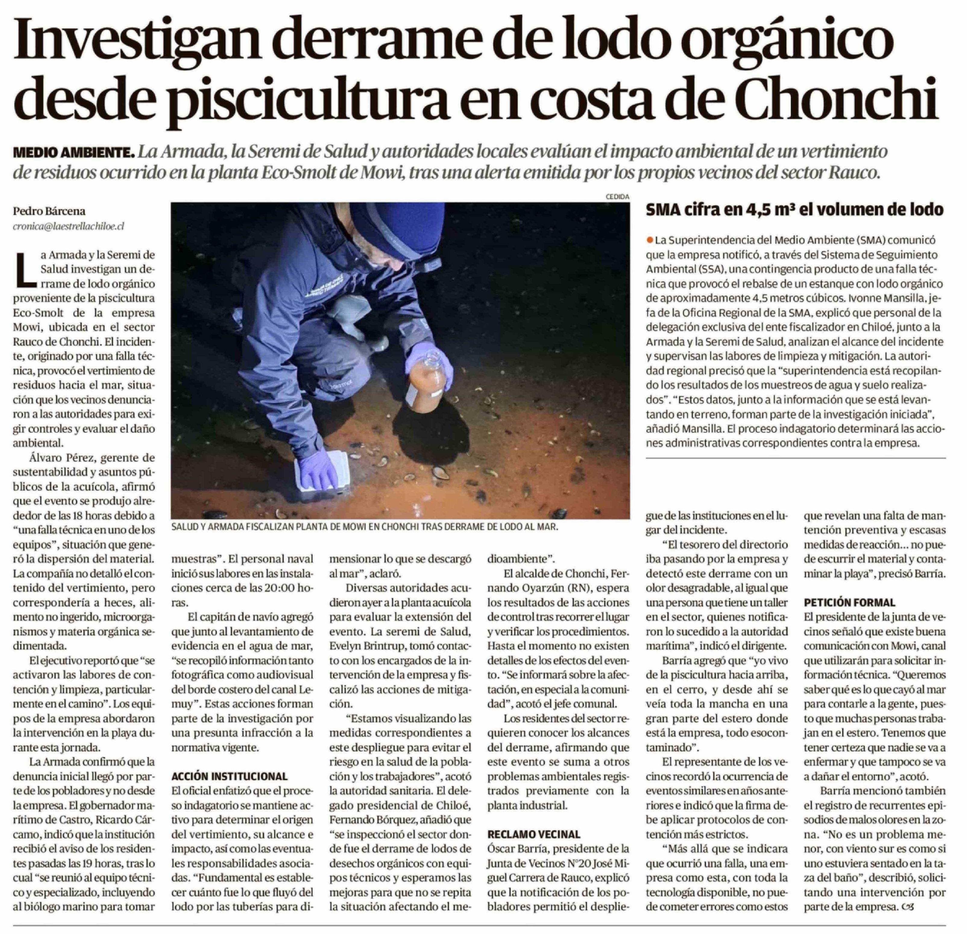 Investigan derrame de lodo orgánico desde piscicultura en costa de Chonchi