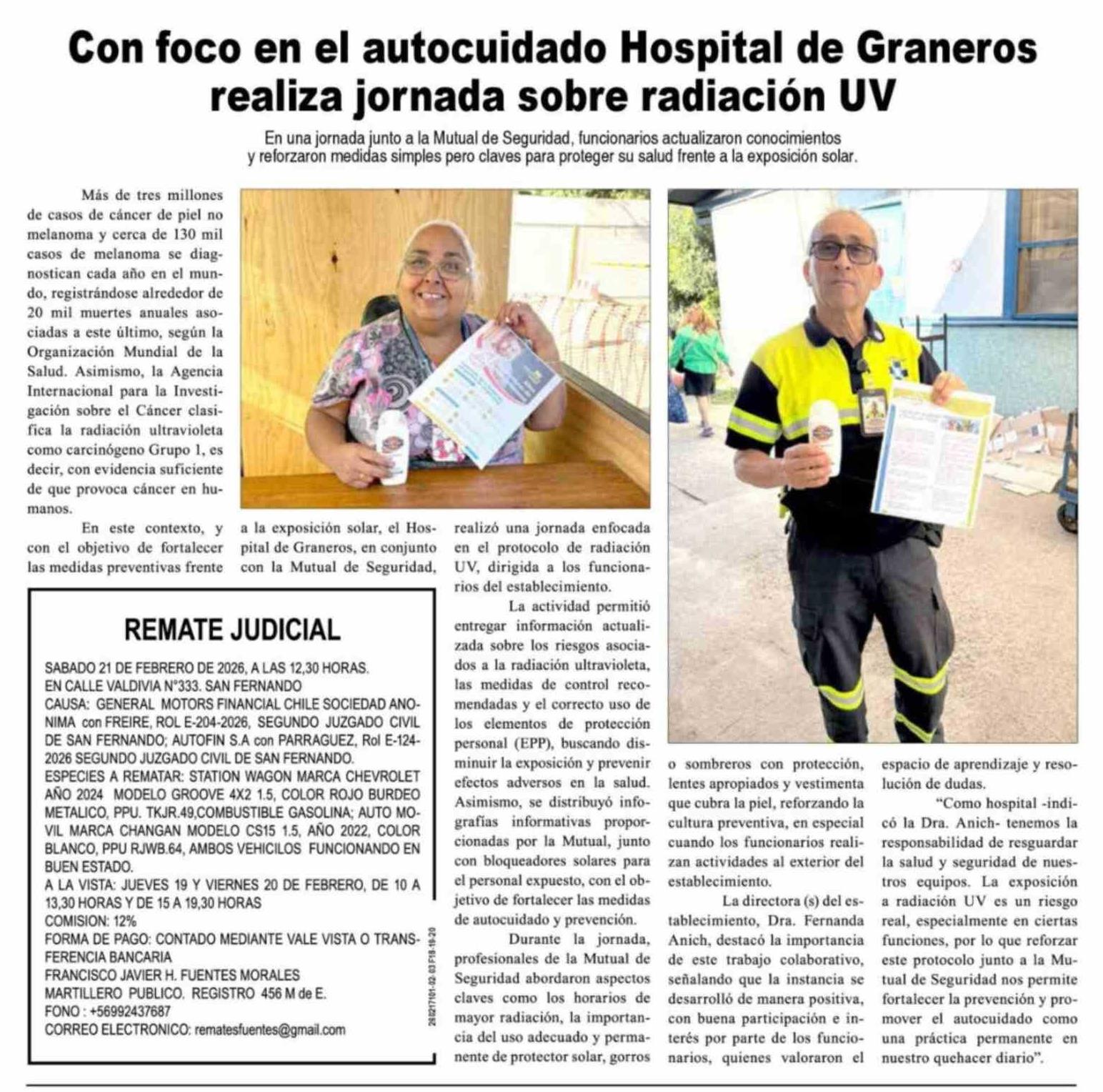 Con foco en el autocuidado Hospital de Graneros realiza jornada sobre radiación UV
