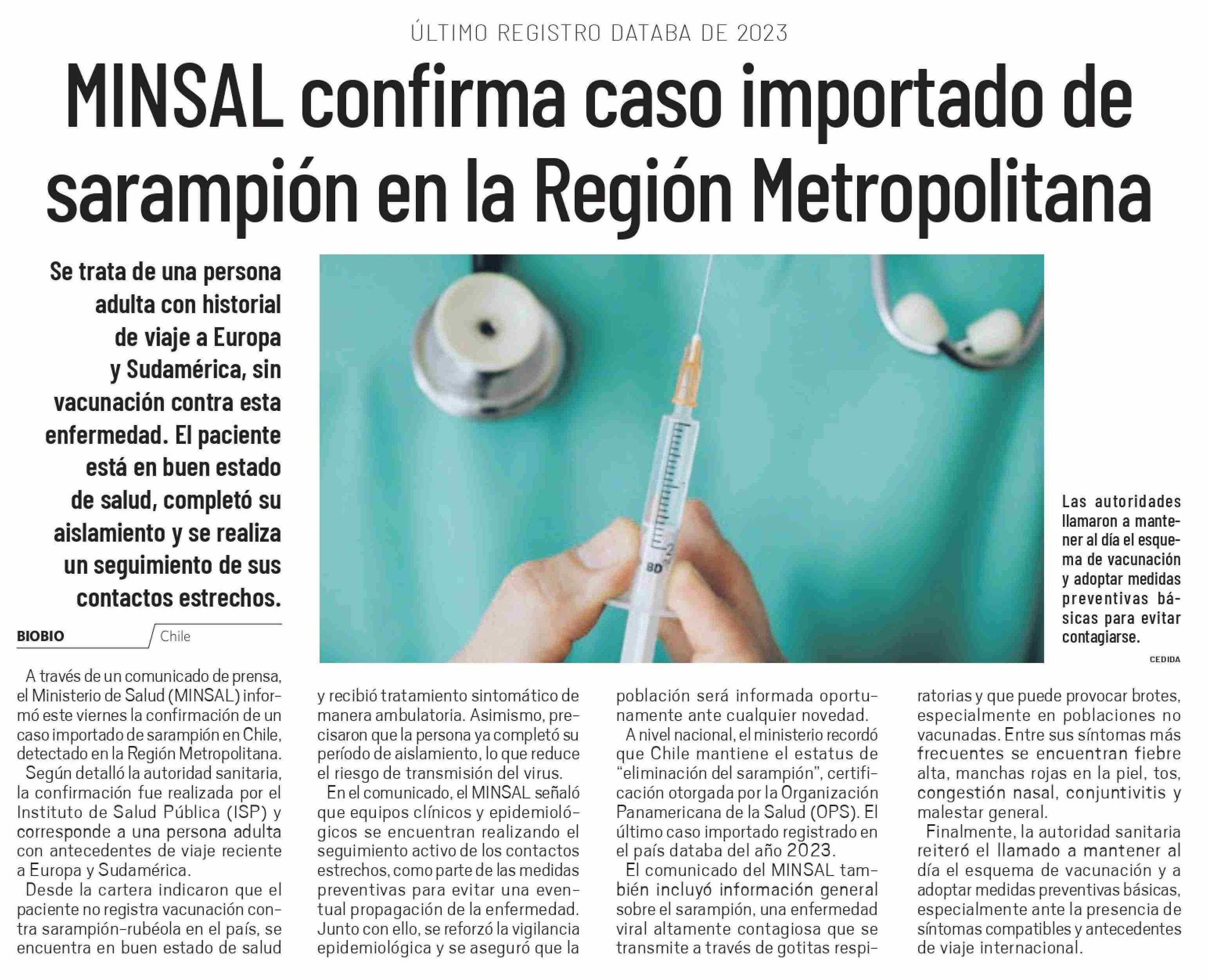 MINSAL confirma caso importado de sarampión en la Región Metropolitana