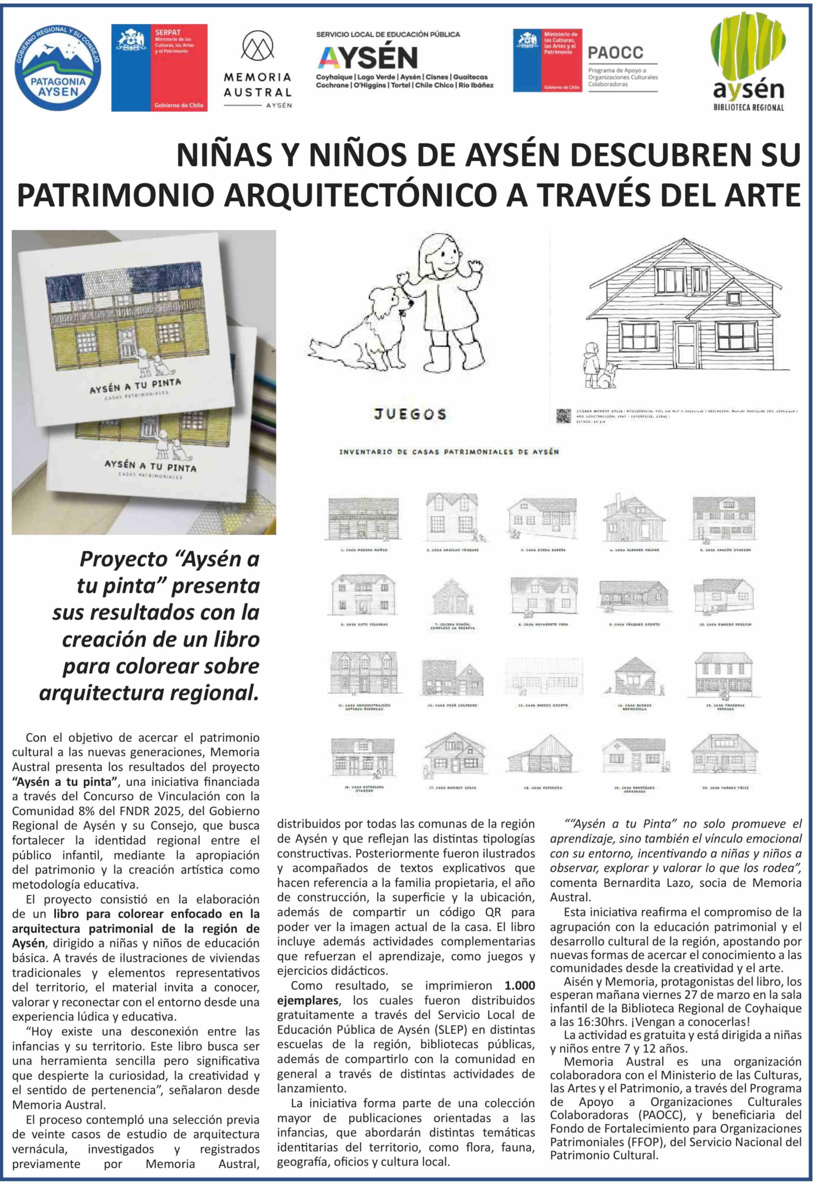 NIÑAS Y NIÑOS DE AYSÉN DESCUBREN SU PATRIMONIO ARQUITECTÓNICO A TRAVÉS DEL ARTE