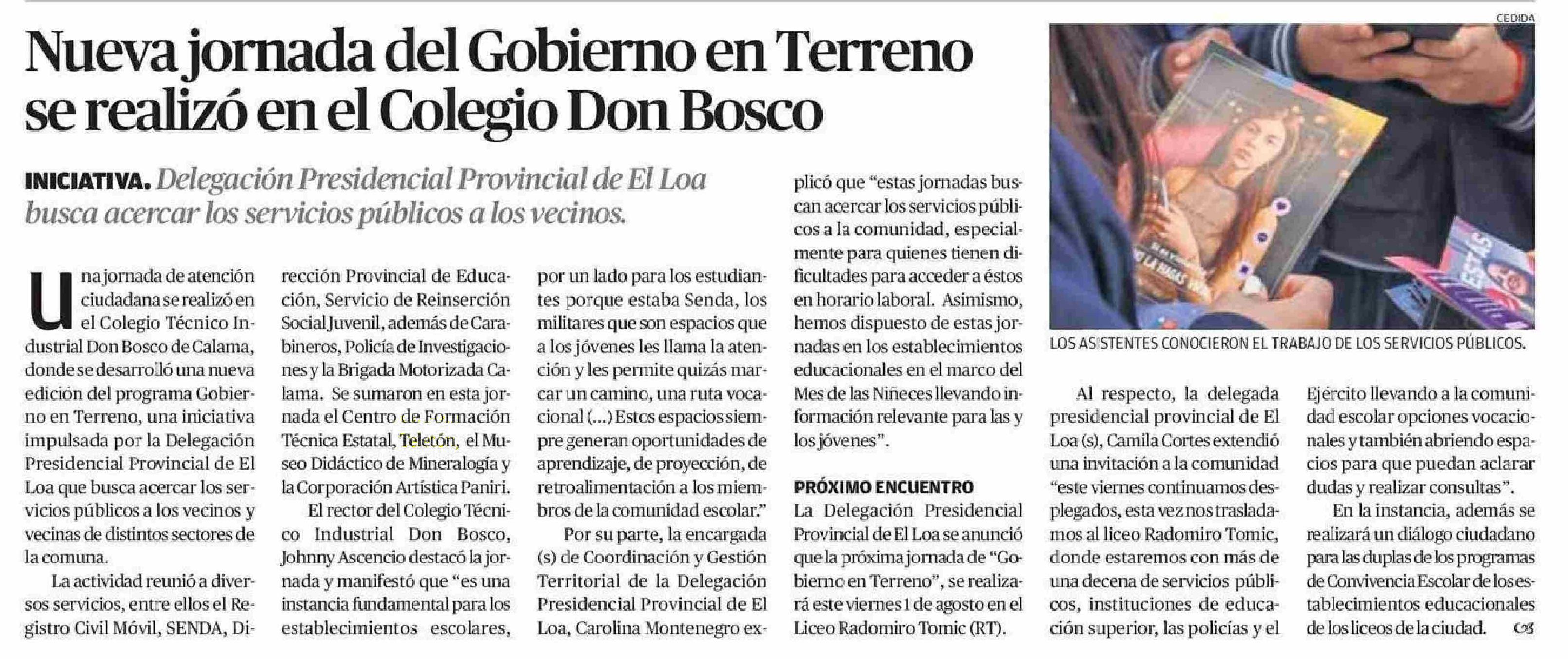 Nueva jornada del Gobierno en Terreno se realizó en el Colegio Don Bosco