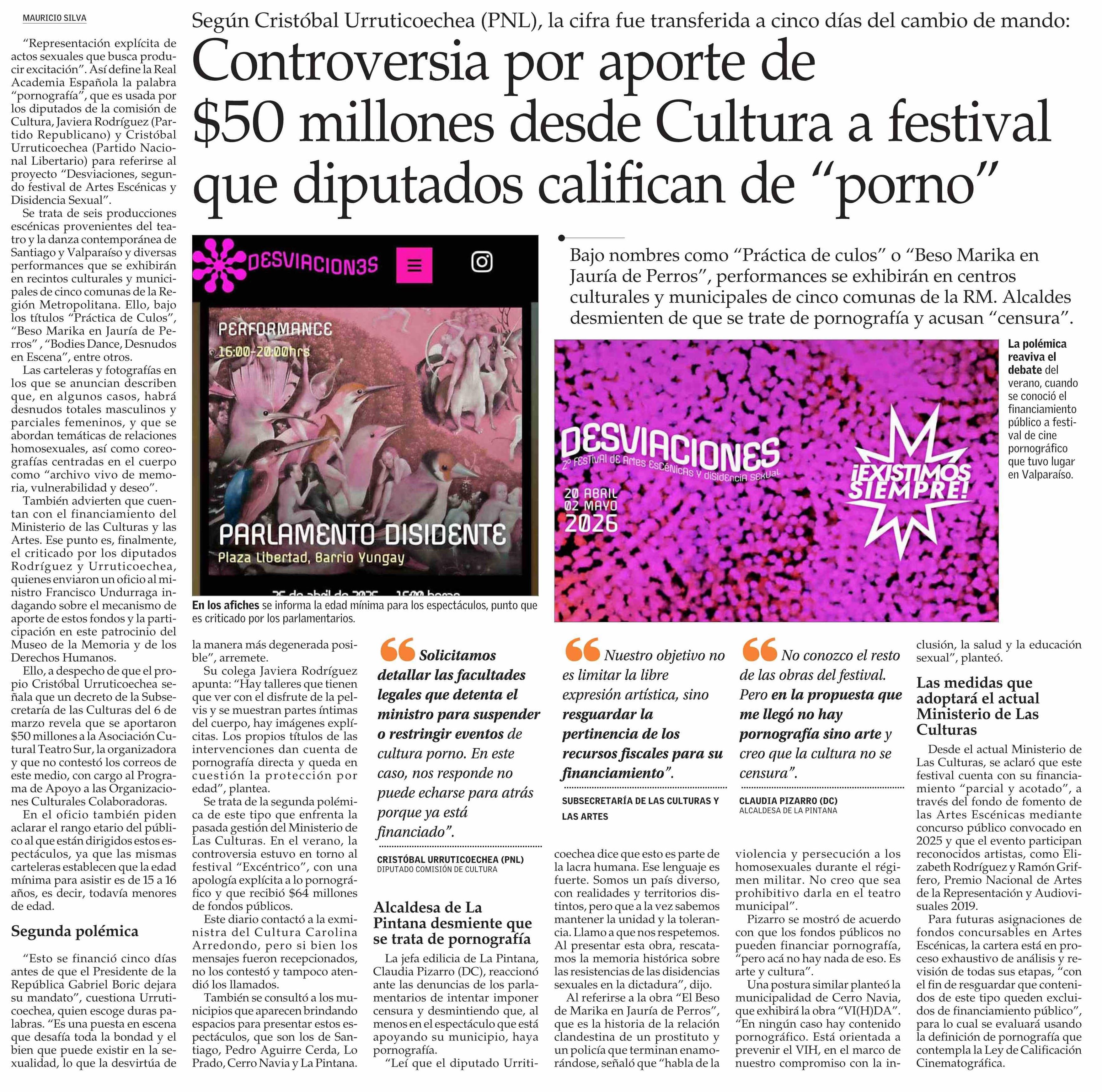 Controversia por aporte de $50 millones desde Cultura a festival que diputados califican de “porno”