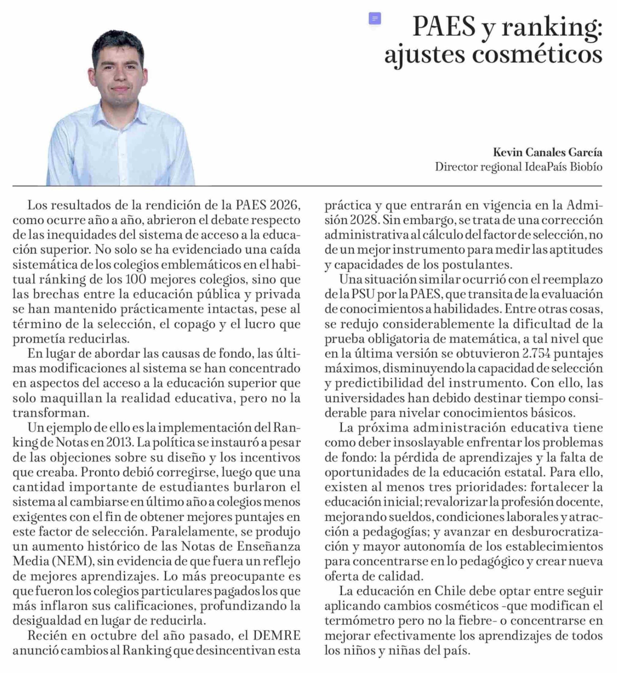 Columnas de Opinión: PAES y ranking: ajustes cosméticos