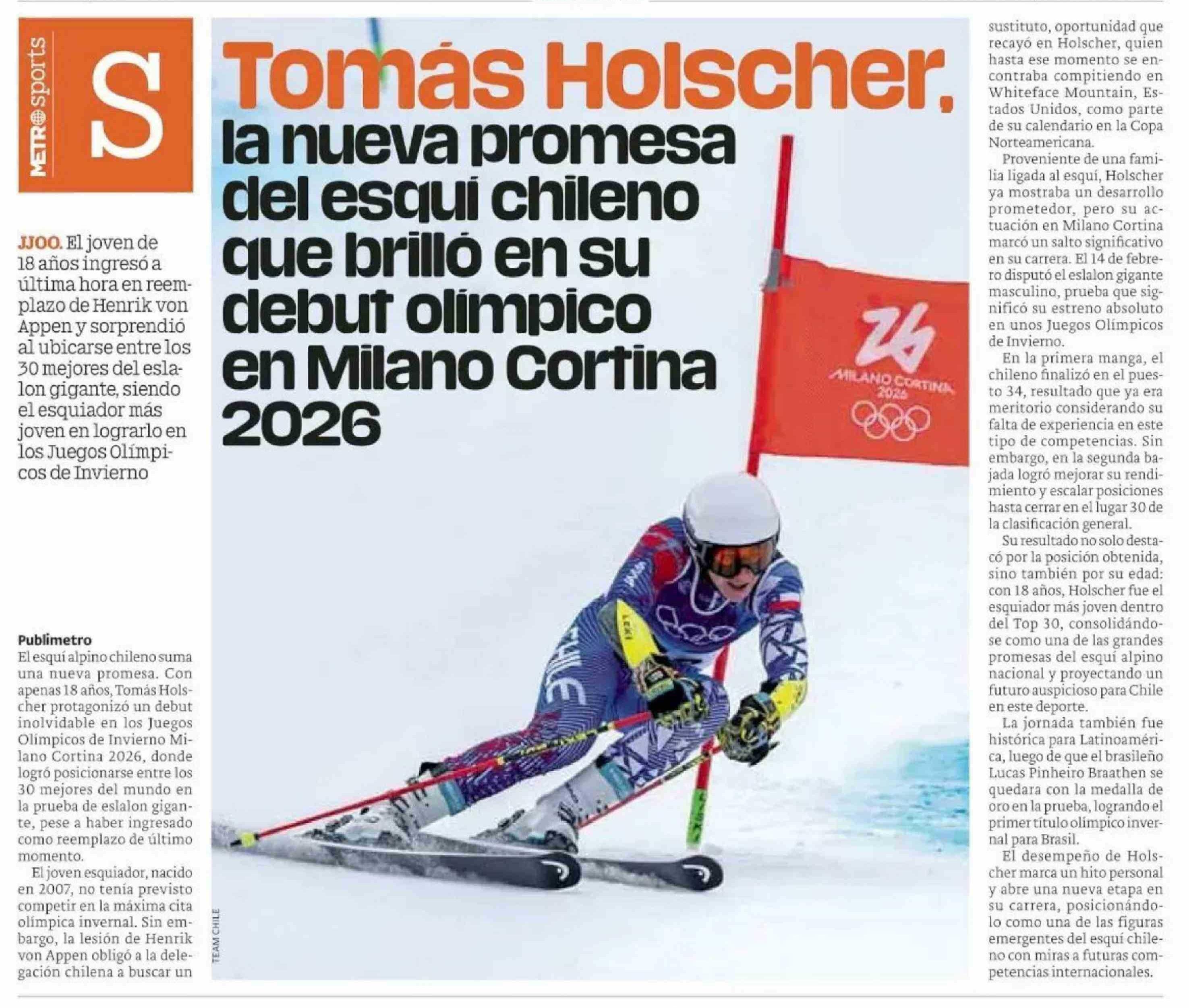Tomas Holscher, la nueva promesa del esqui chileno que brillo en su debut olimpico en Milano Cortina