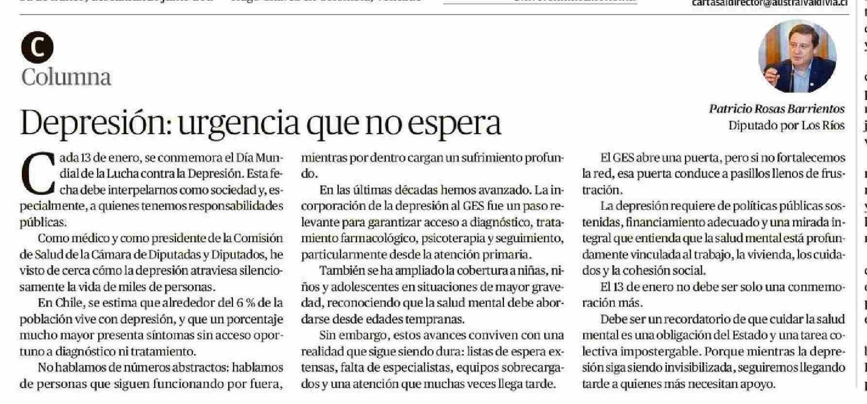 Columnas de Opinión: Depresión: urgencia que no espera