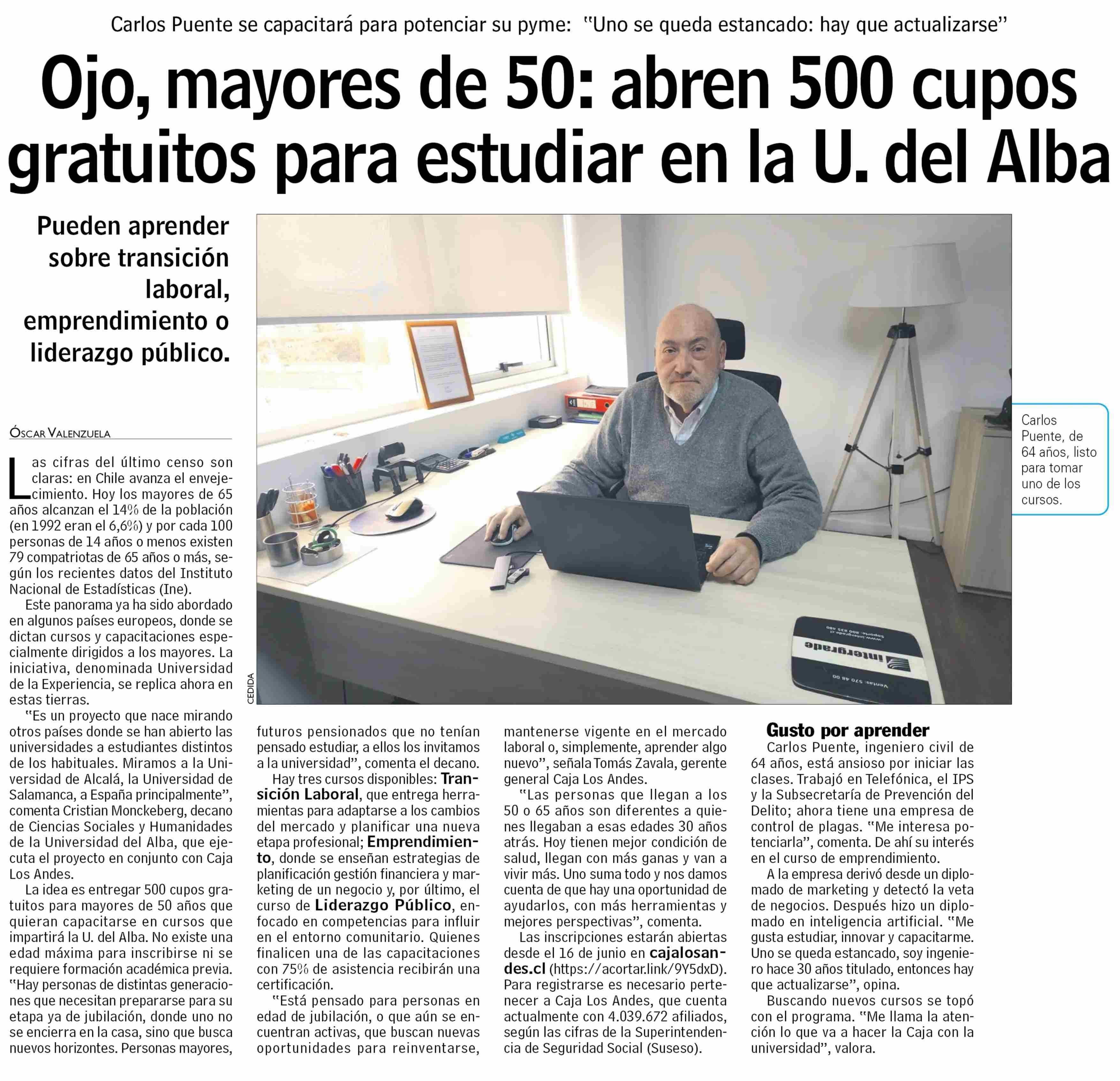 Ojo, mayores de 50: abren 500 cupos gratuitos para estudiar en la U, del Alba