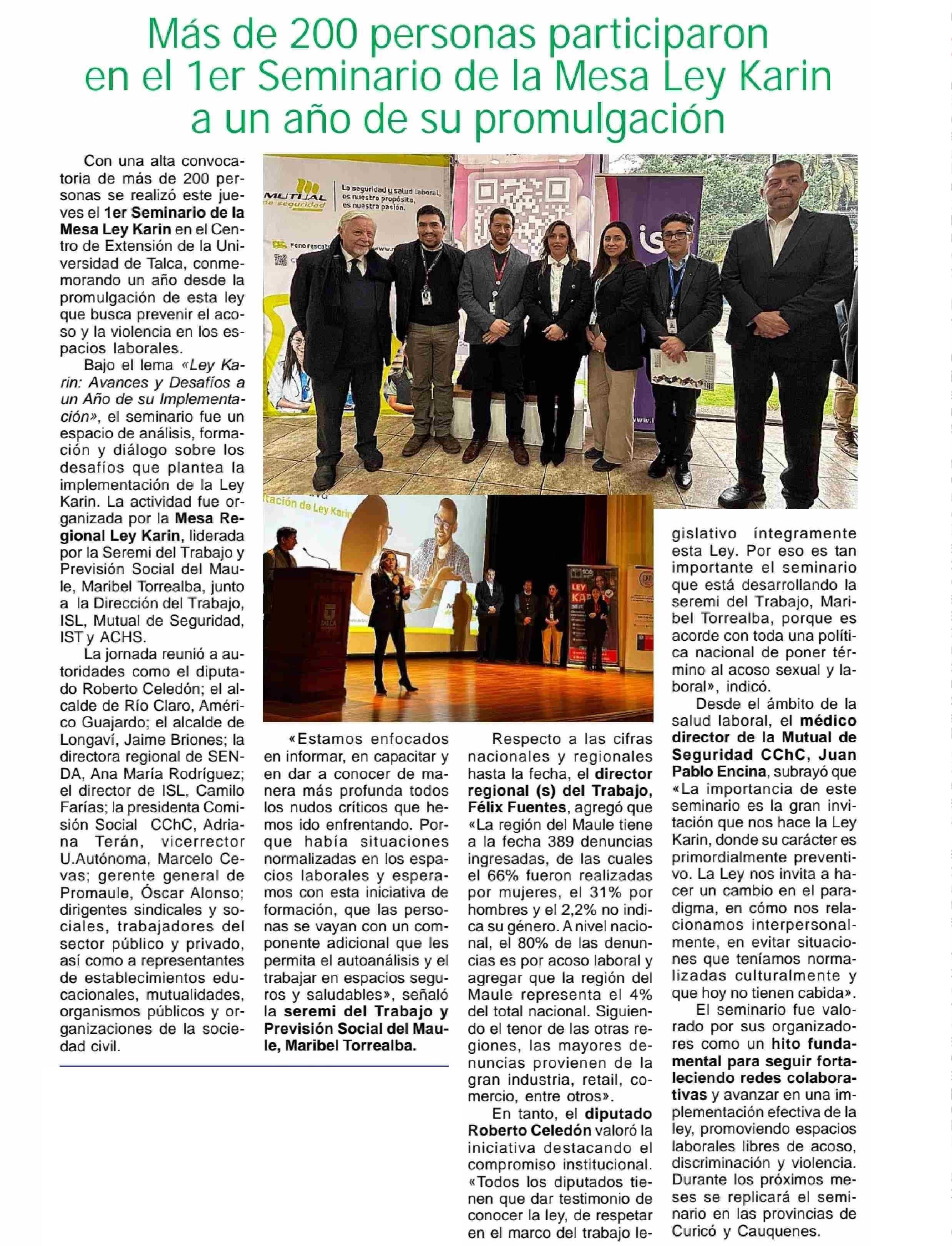 Más de 200 personas participaron en el ler Seminario de la Mesa Ley Karin a un año de su promulgación
