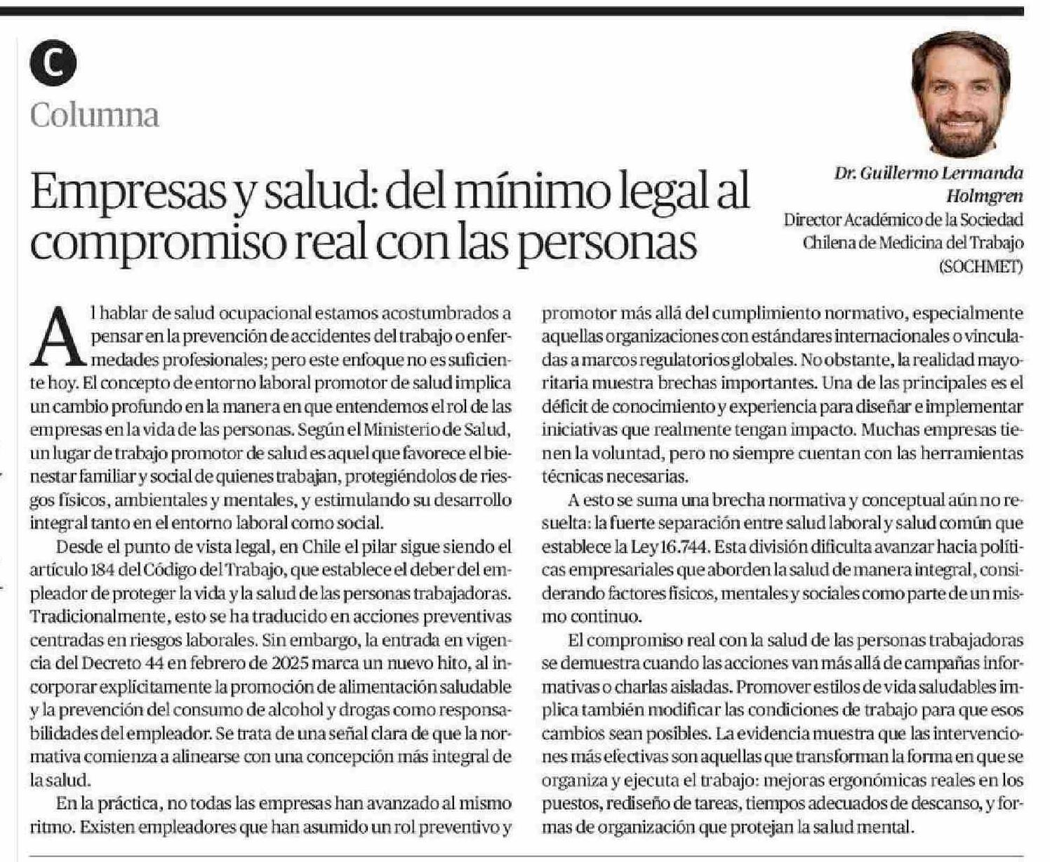 Columnas de Opinión: Empresas y salud: del mínimo legal al compromiso real con las personas