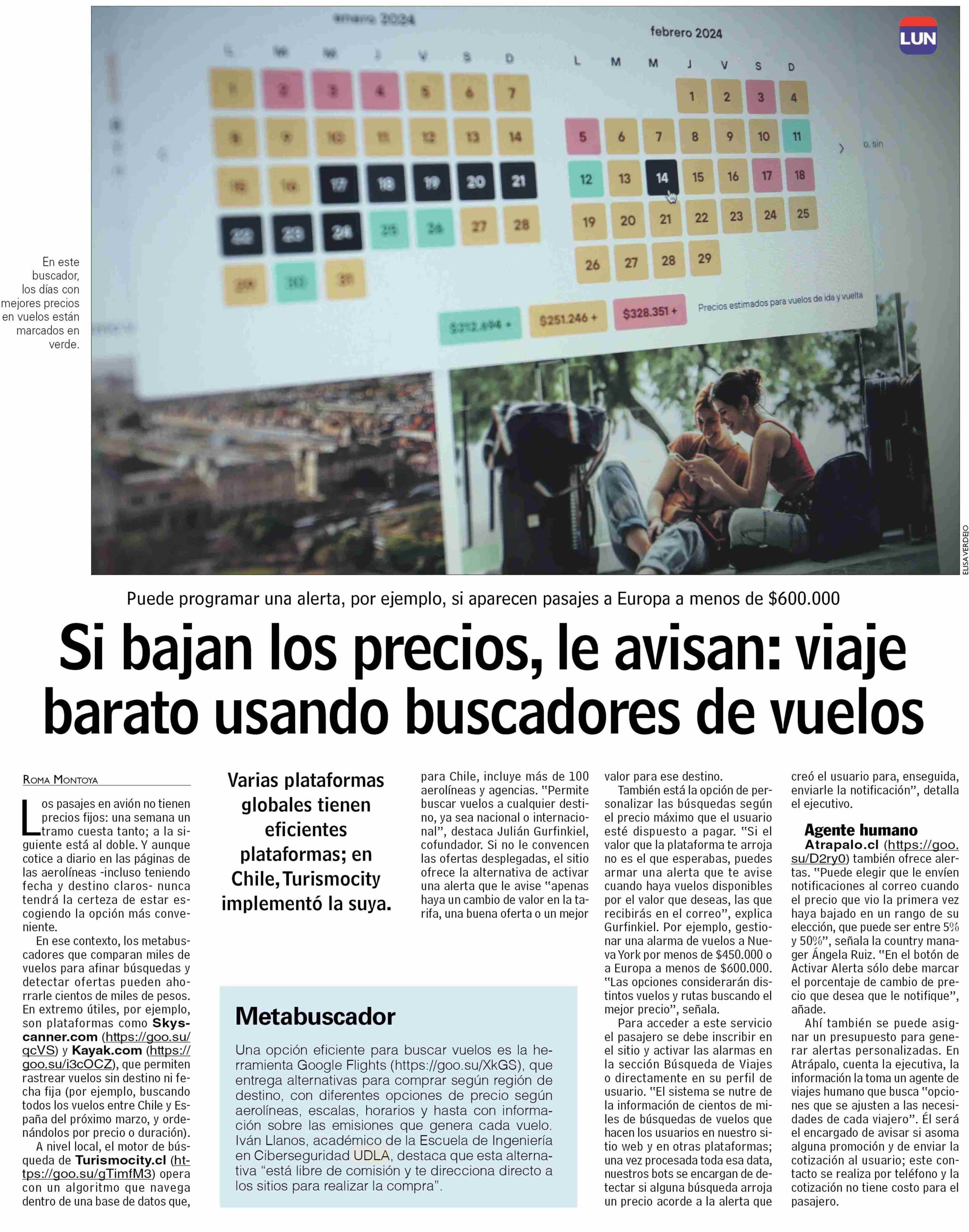 Si bajan los precios, le avisan: viaje barato usando buscadores de vuelos