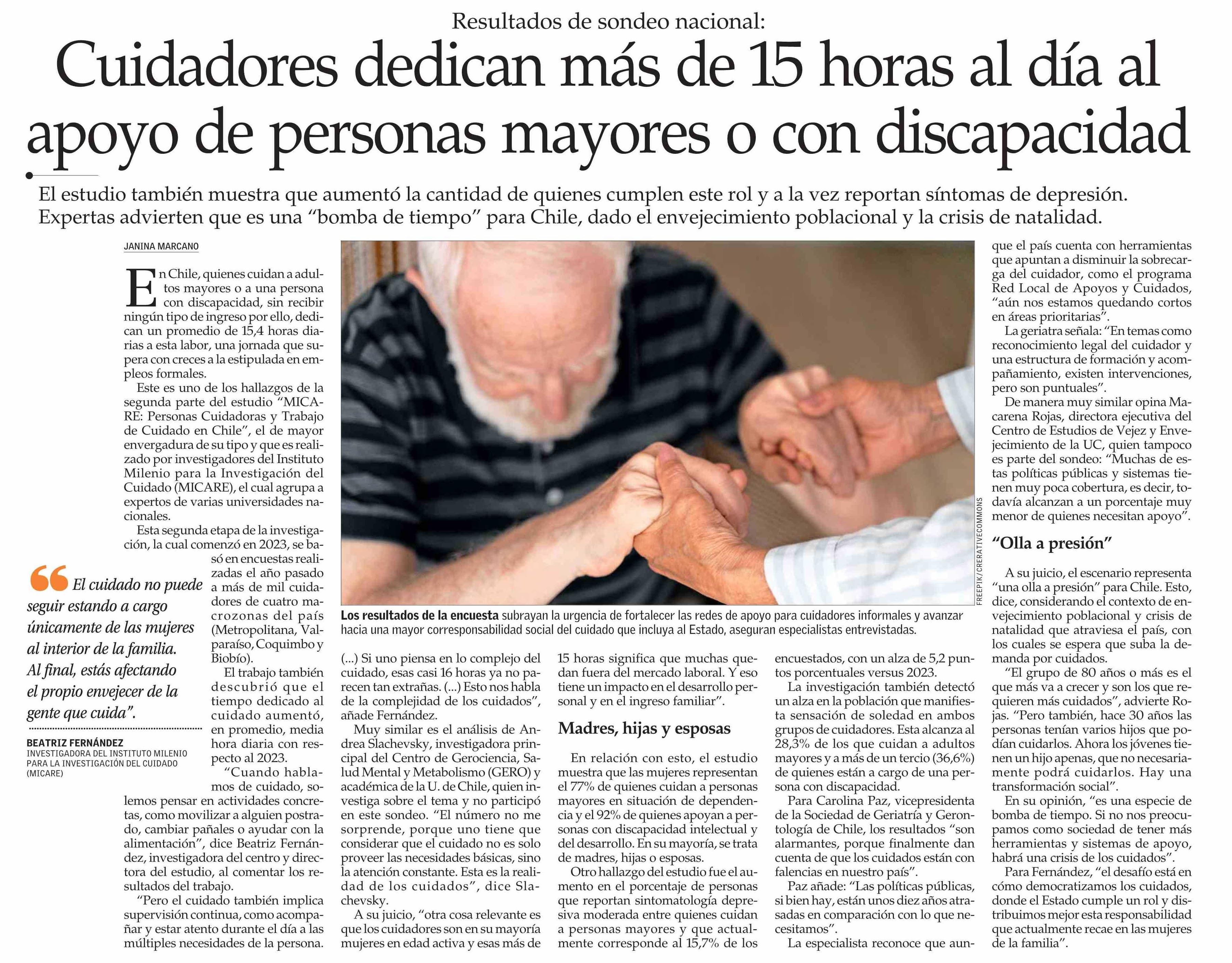 Cuidadores dedican más de 15 horas al día al apoyo de personas mayores o con discapacidad