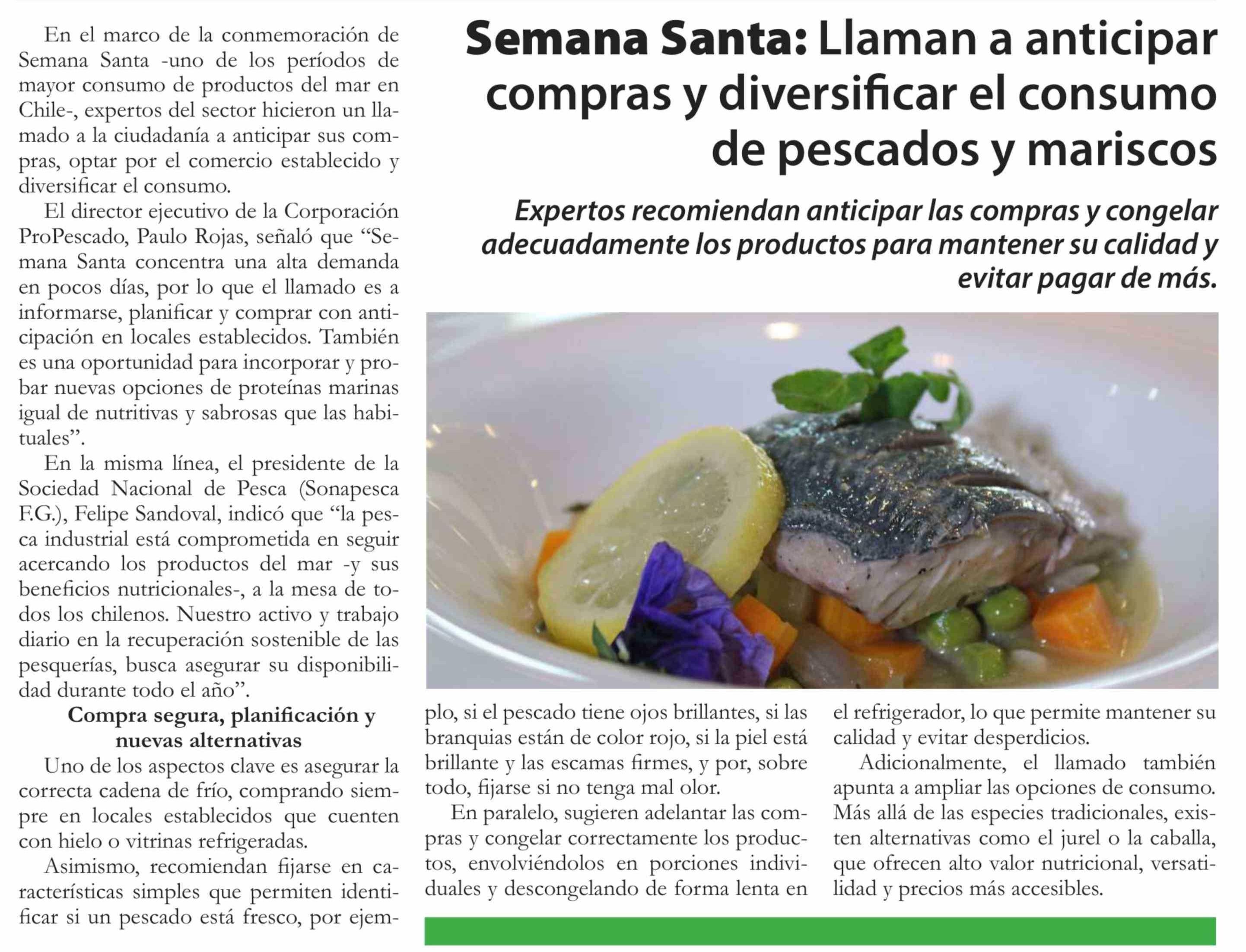 Semana Santa: Llaman a anticipar compras y diversificar el consumo de pescados y mariscos