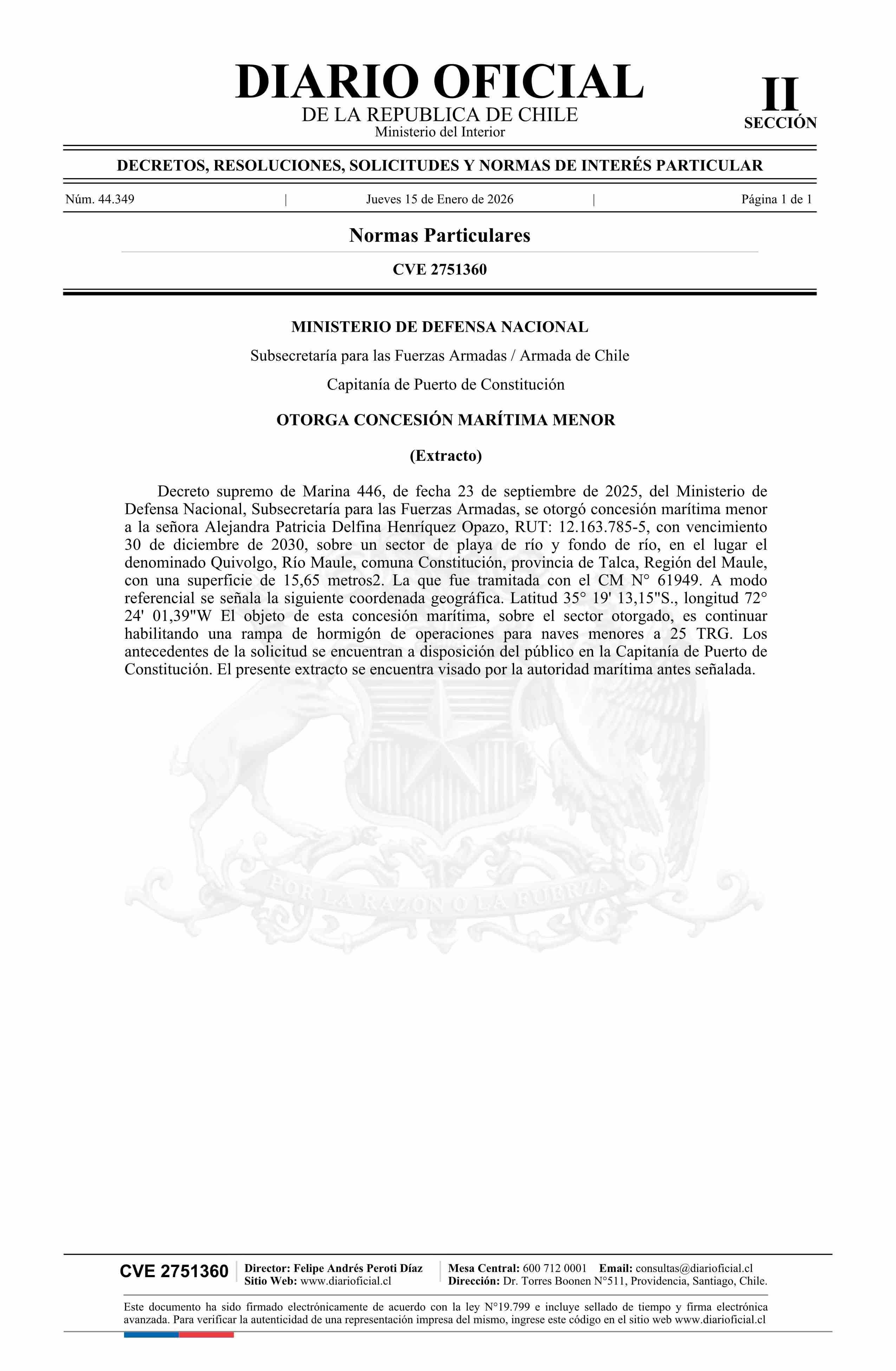 Extracto de decreto número 446, de 2025.- Otorga concesión marítima menor