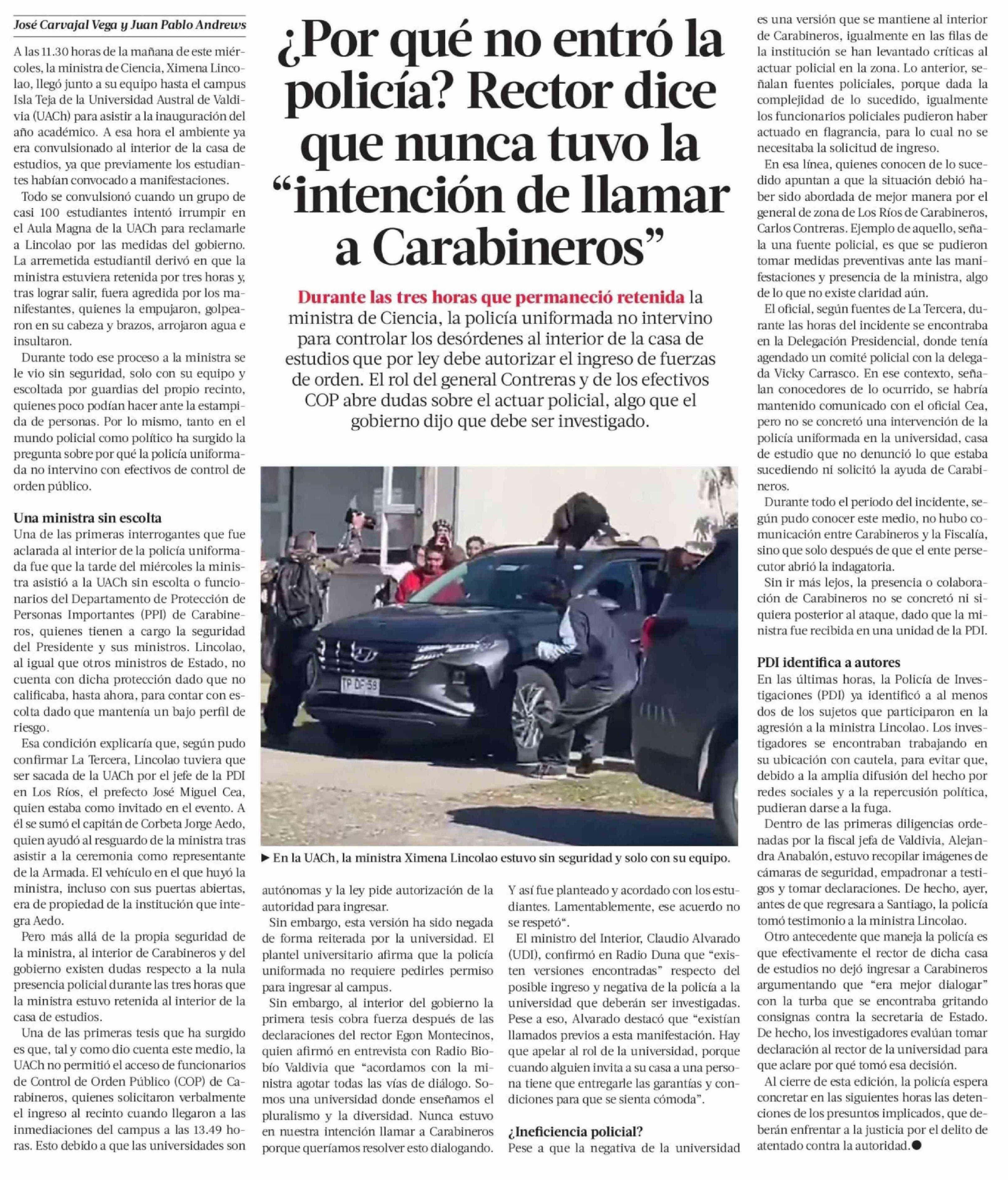 ¿Por qué no entró la policía? Rector dice que nunca tuvo la "intención de llamar a Carabineros"