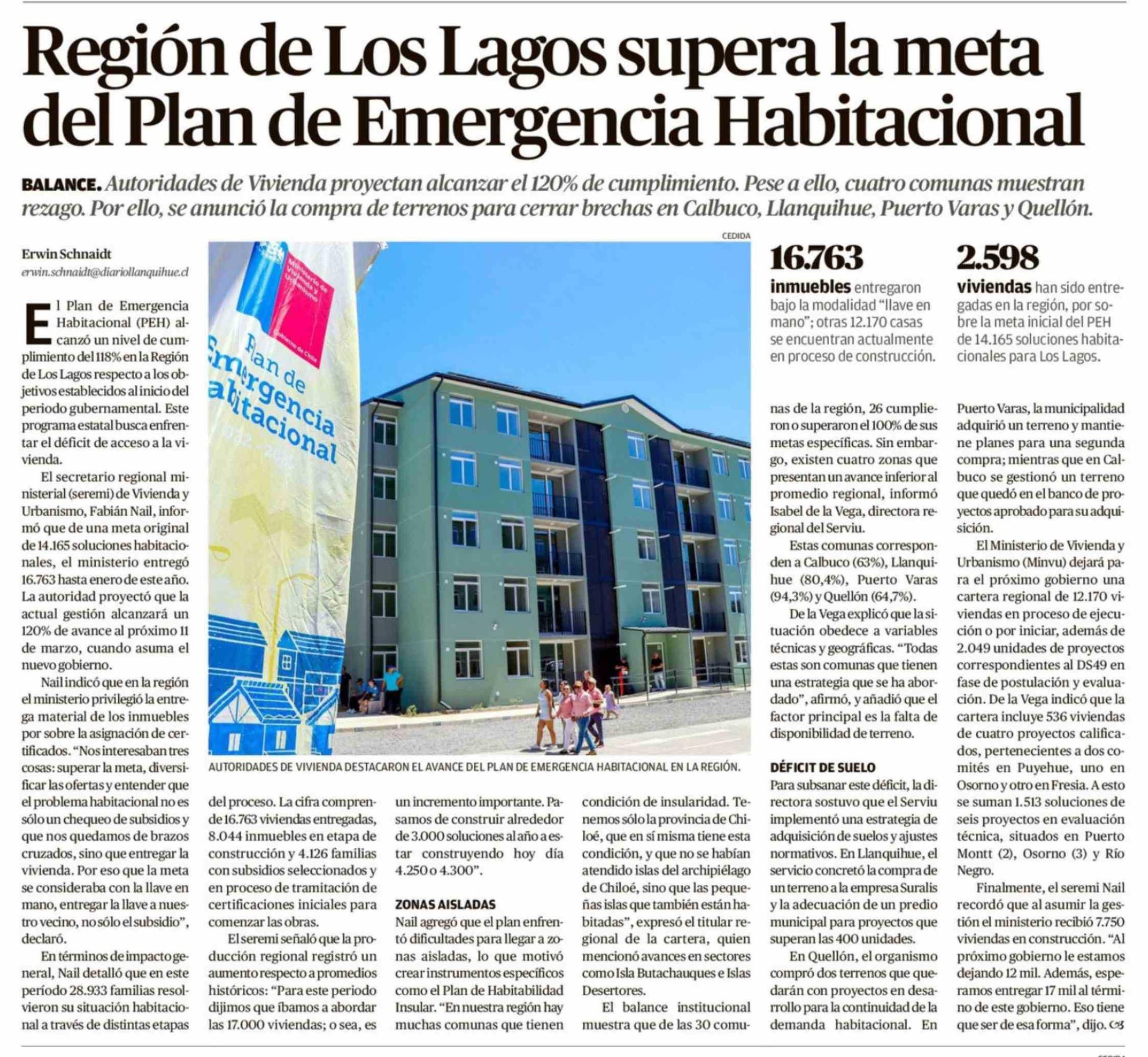 Región de Los Lagos supera la meta del Plan de Emergencia Habitacional