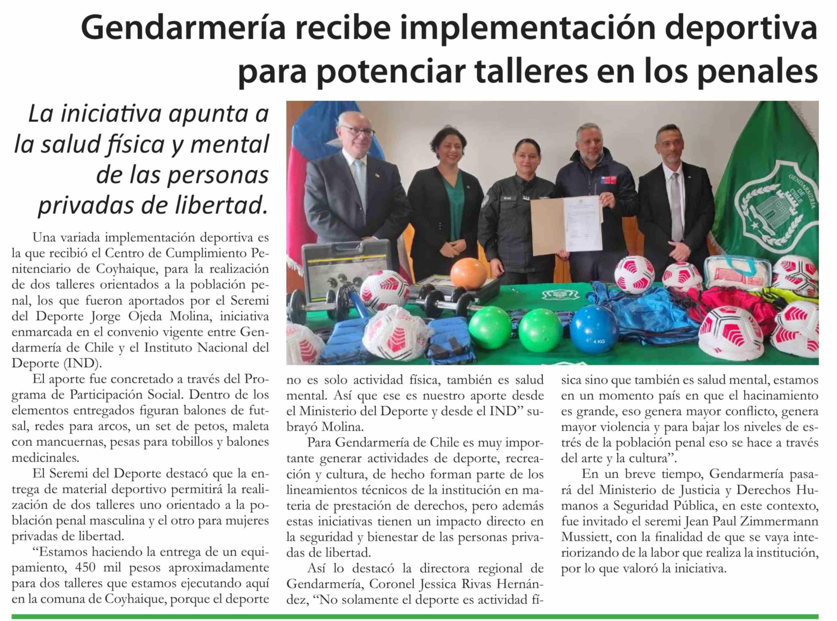 Gendarmería recibe implementación deportiva para potenciar talleres en los penales