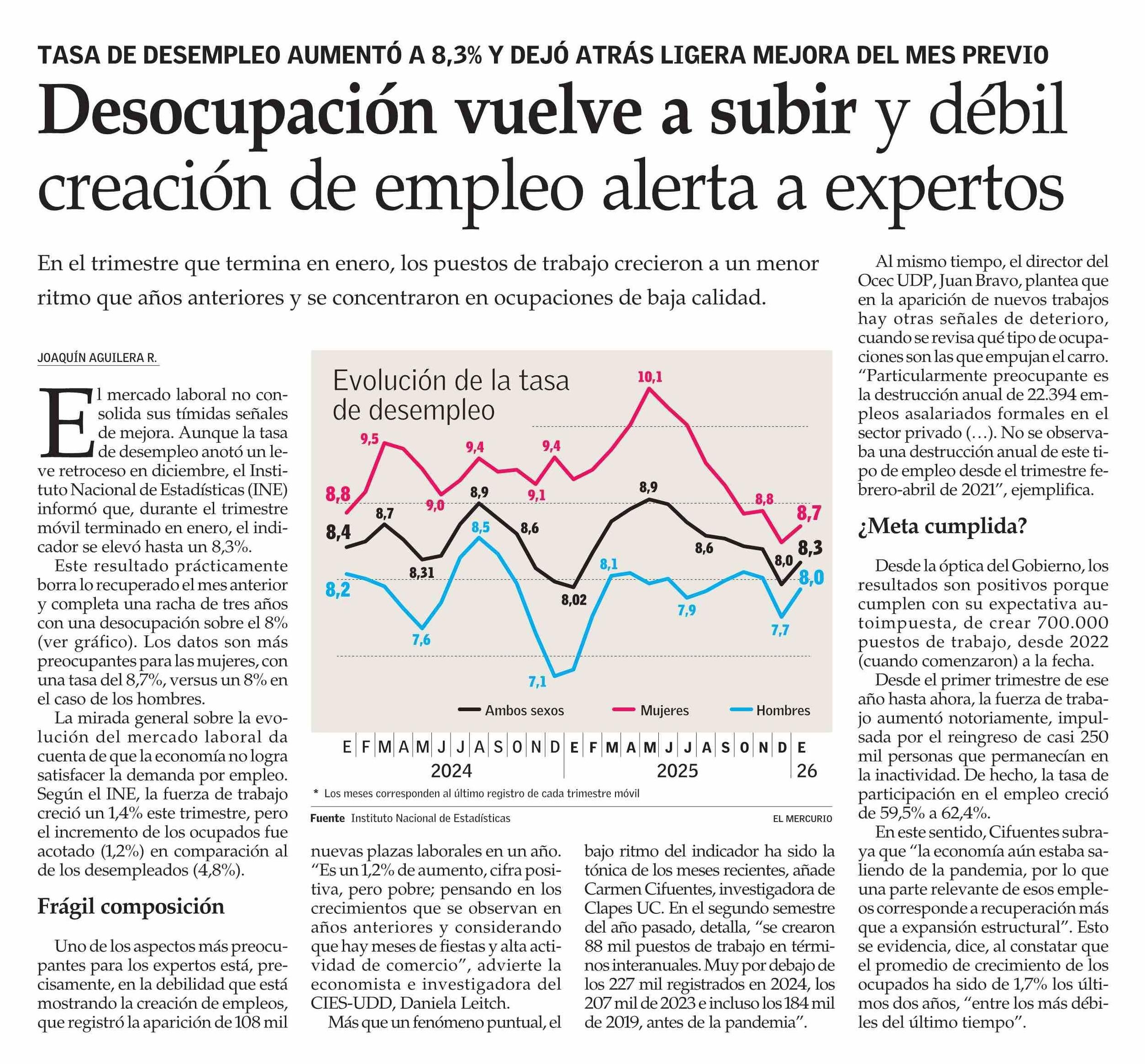 Desocupación vuelve a subir y débil creación de empleo alerta a expertos