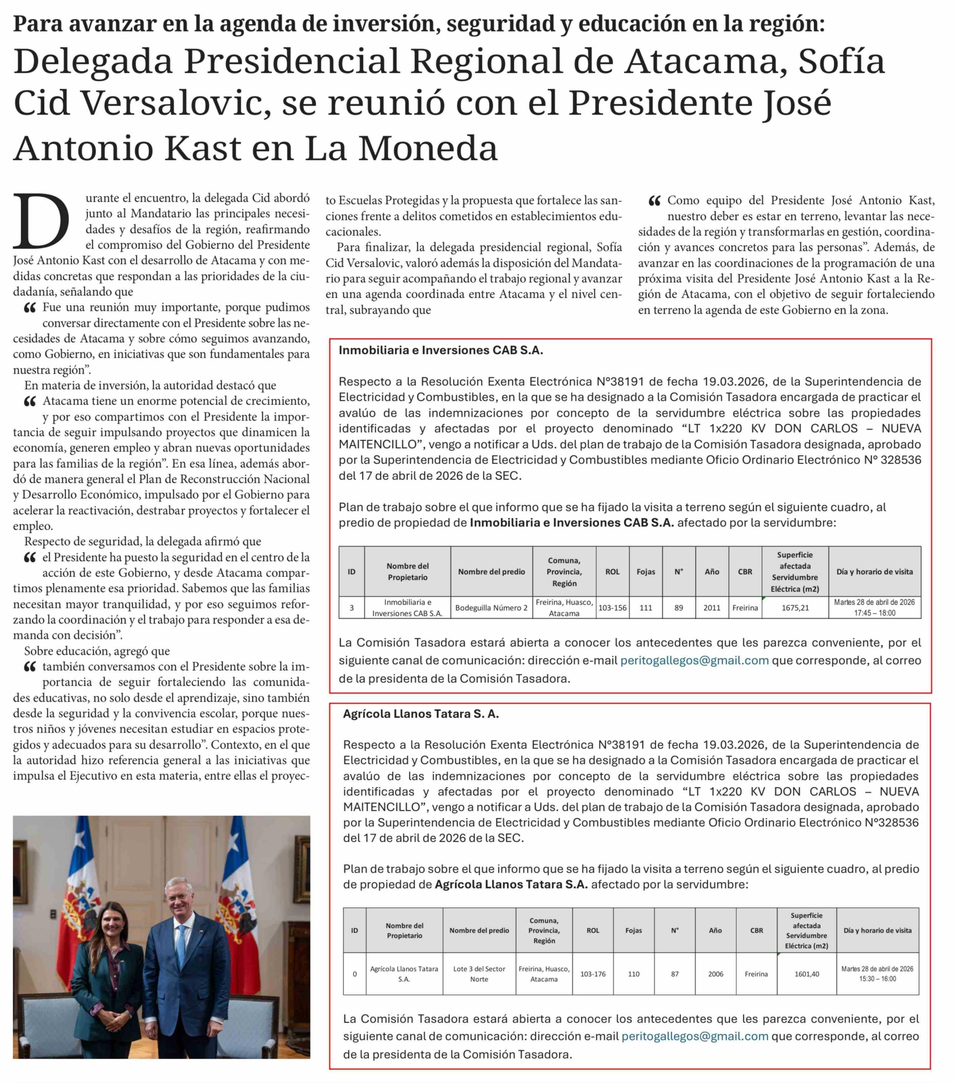 Delegada Presidencial Regional de Atacama, Sofía Cid Versalovic, se reunió con el Presidente José Antonio Kast en La Moneda