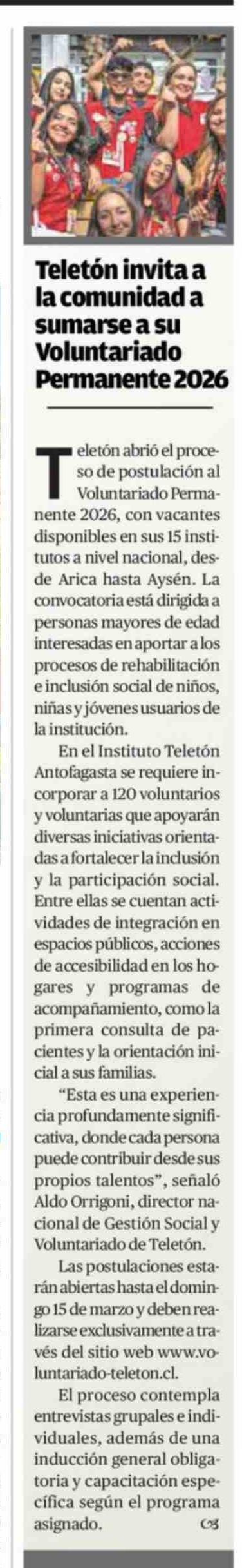 Teletón invita a la comunidad a sumarse a su Voluntariado Permanente 2026