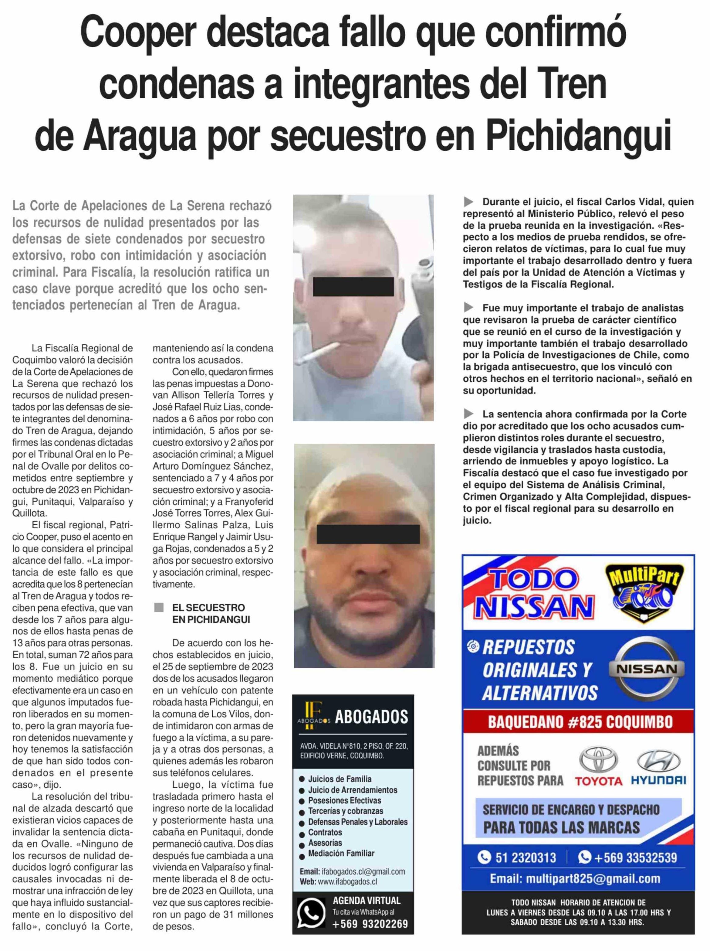 Cooper destaca fallo que confirmó condenas a integrantes del Tren de Aragua por secuestro en Pichidangui