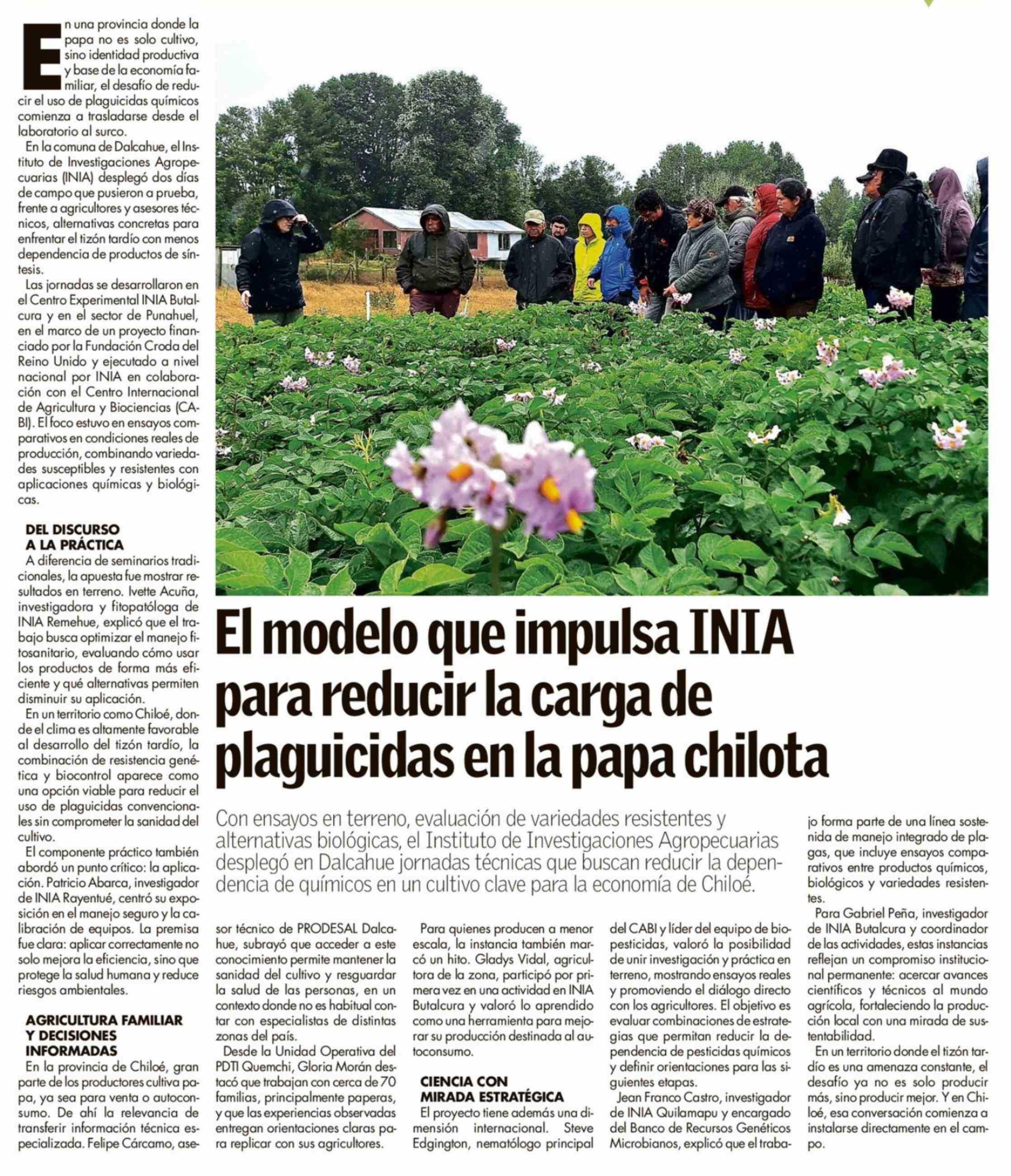 El modelo que impulsa INIA para reducir la carga de plaguicidas en la papa chilota