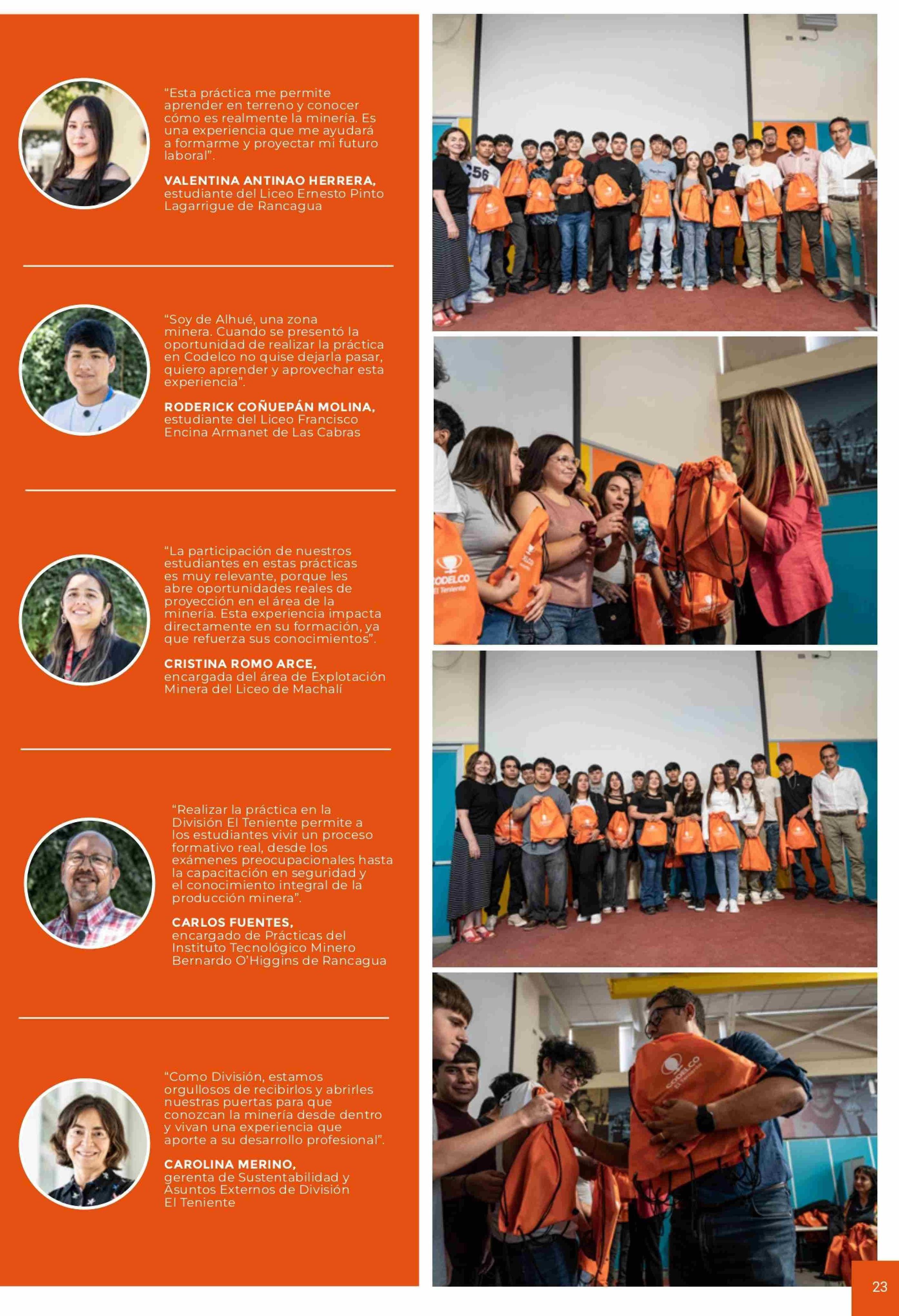 87 Estudiantes de liceos técnicos de la Región de O'Higgins iniciaron sus prácticas en El Teniente