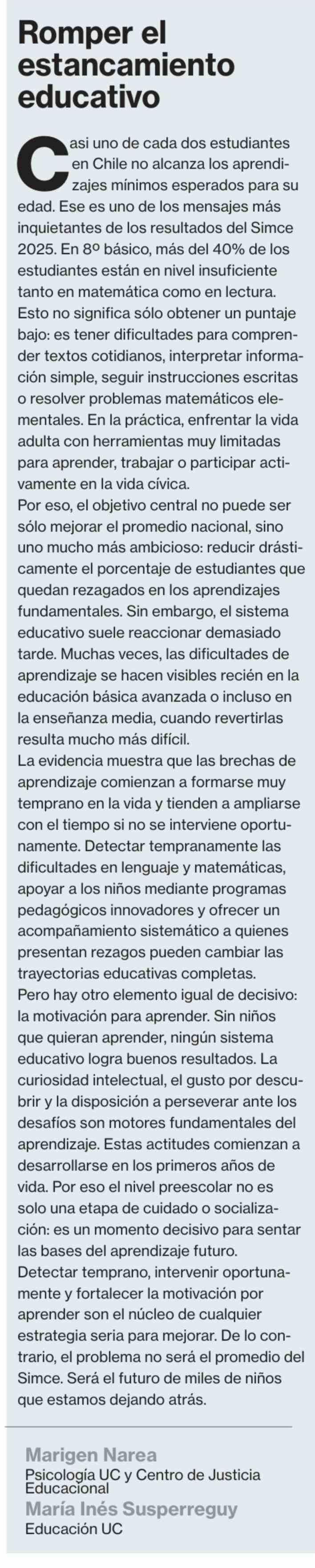 Romper el estancamiento educativo