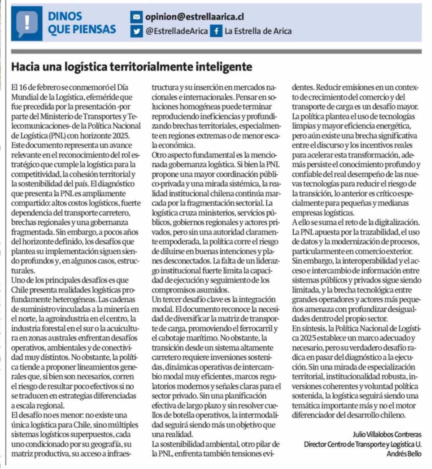 Cartas: Hacia una logística territorialmente inteligente