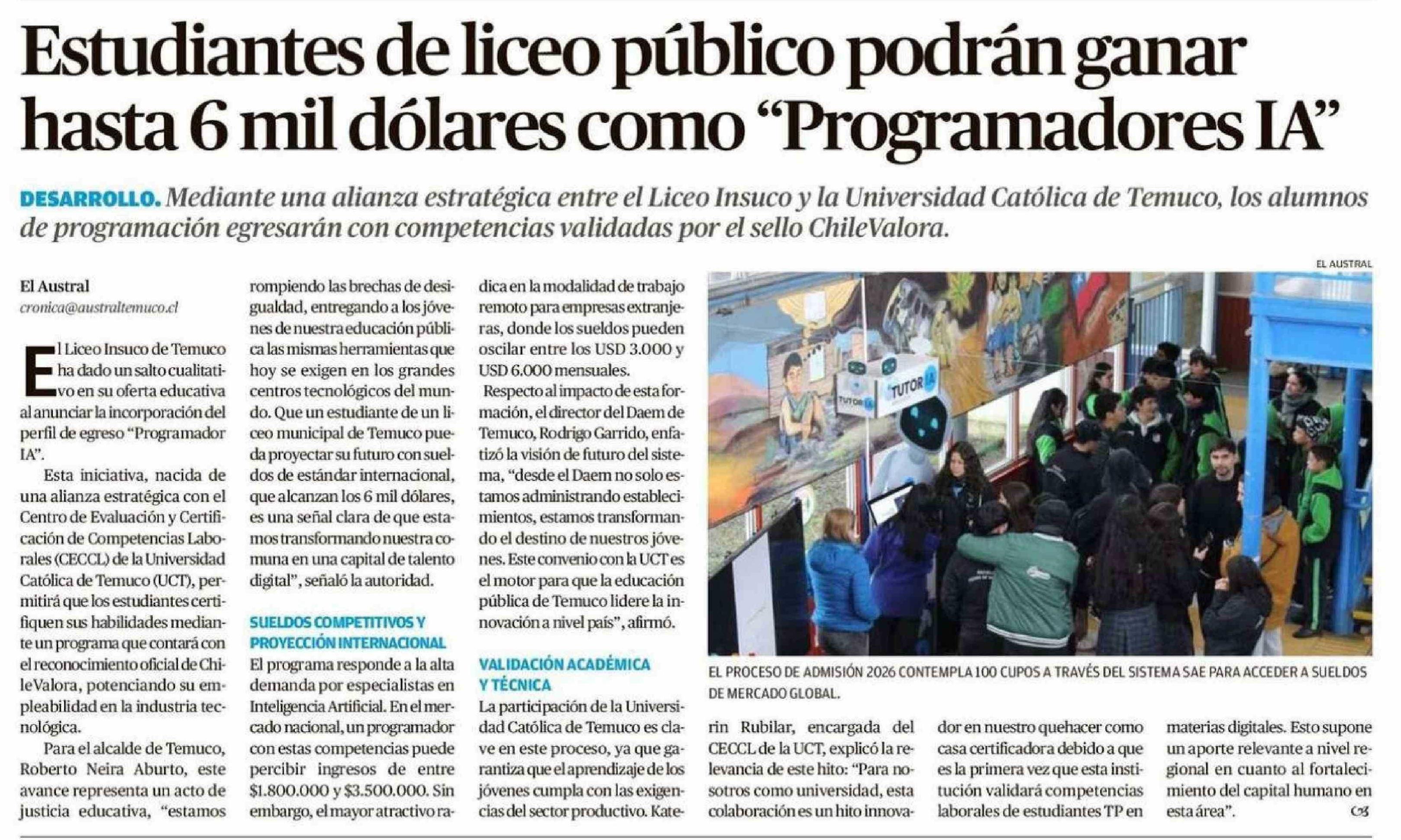 Estudiantes de liceo público podrán ganar hasta 6 mil dólares como "Programadores IA"