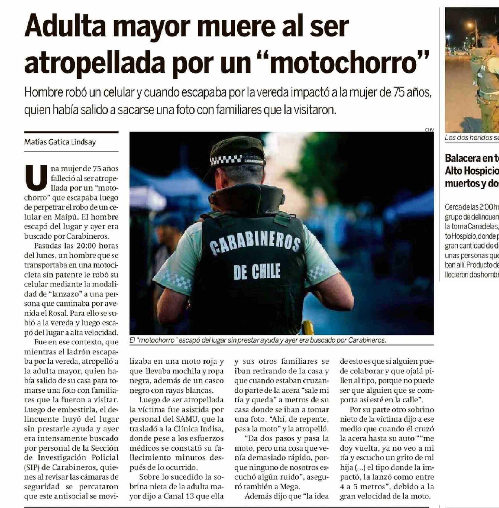 Adulta mayor muere al ser atropellada por un “motochorro”