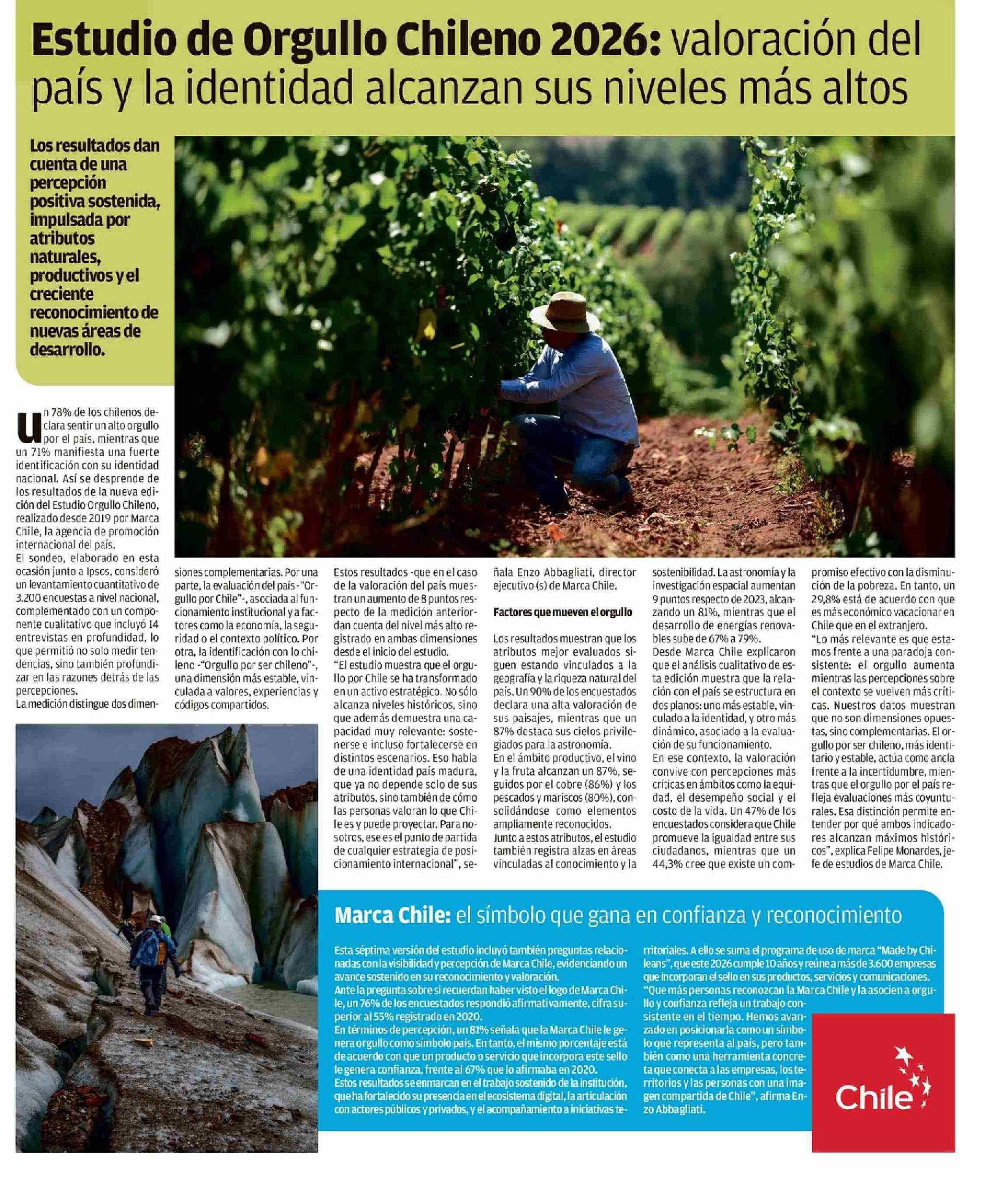Estudio de Orgullo Chileno 2026: valoración del país y la identidad alcanzan sus niveles más altos