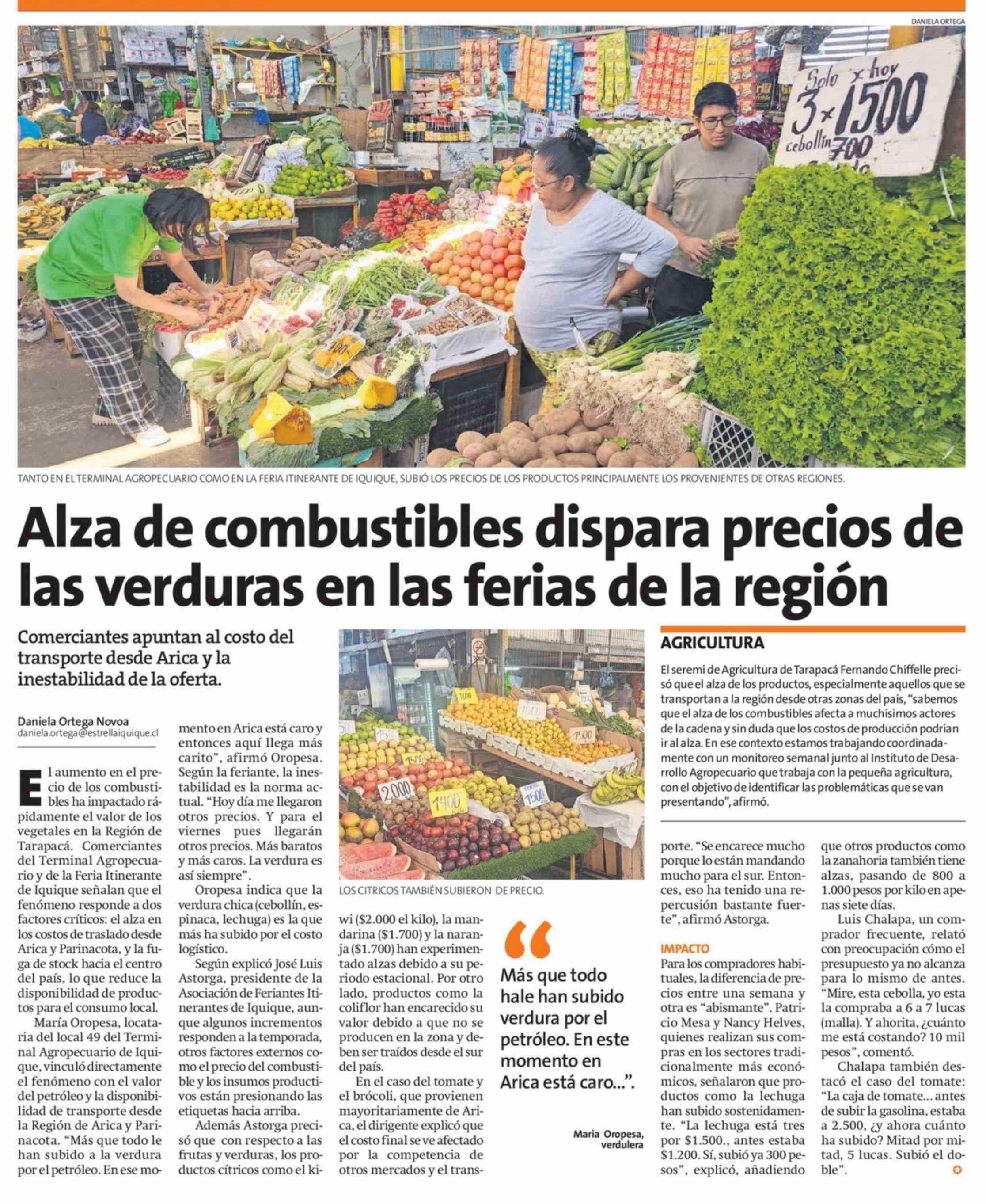 Alza de combustibles dispara precios de las verduras en las ferias de la región