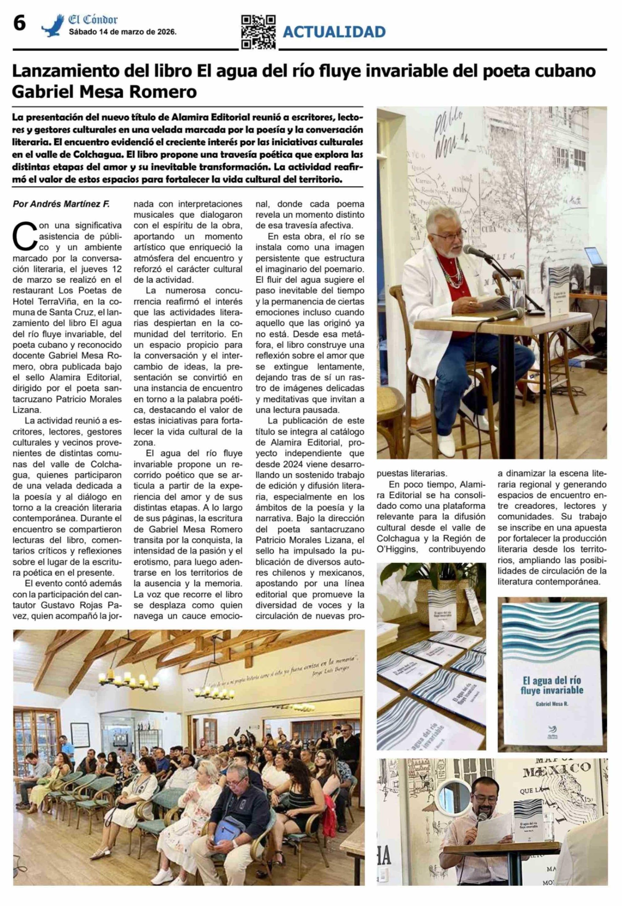 Lanzamiento del libro El agua del río fluye invariable del poeta cubano Gabriel Mesa Romero
