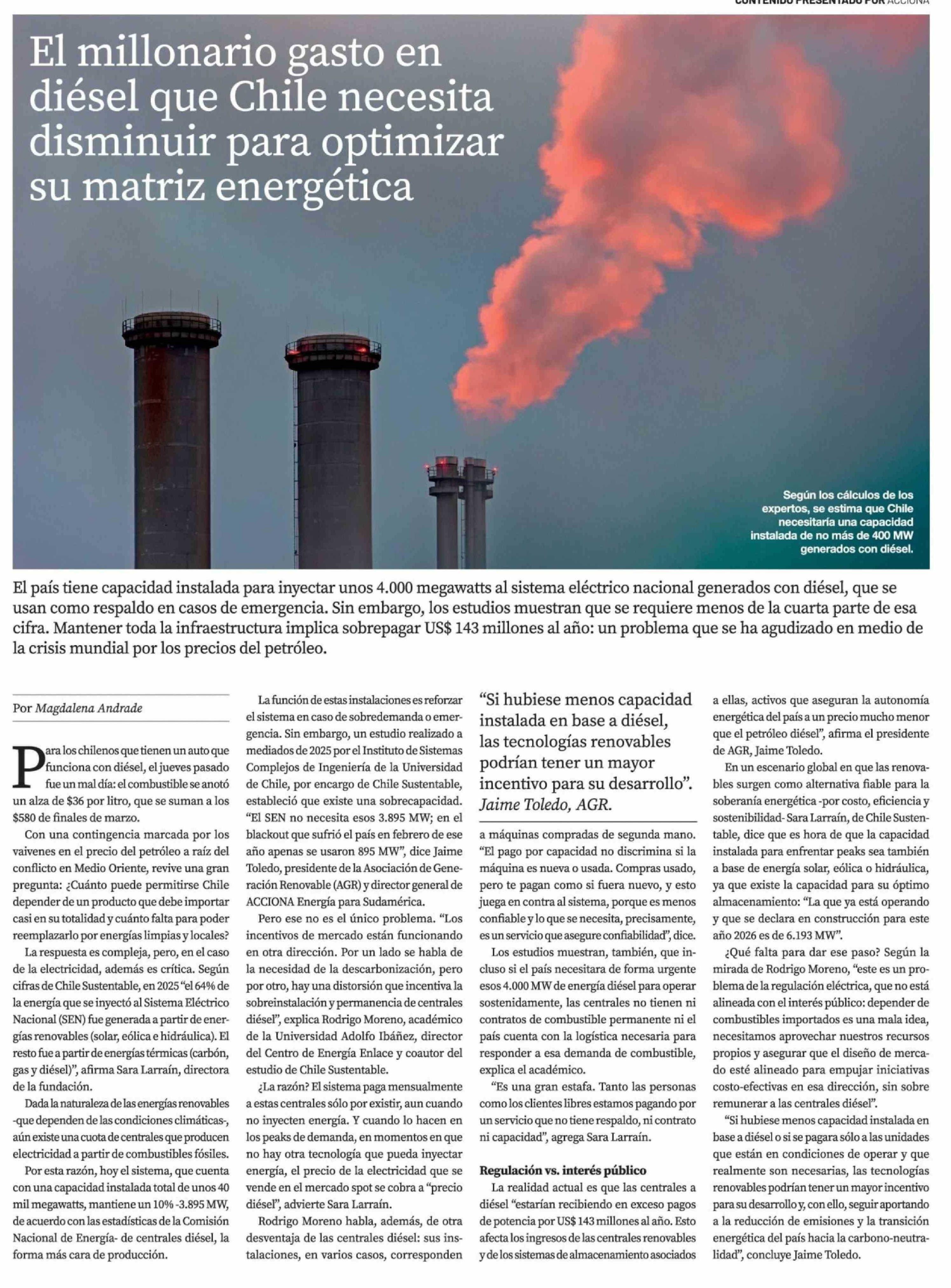 El millonario gasto en diésel que Chile necesita disminuir para optimizar su matriz energética