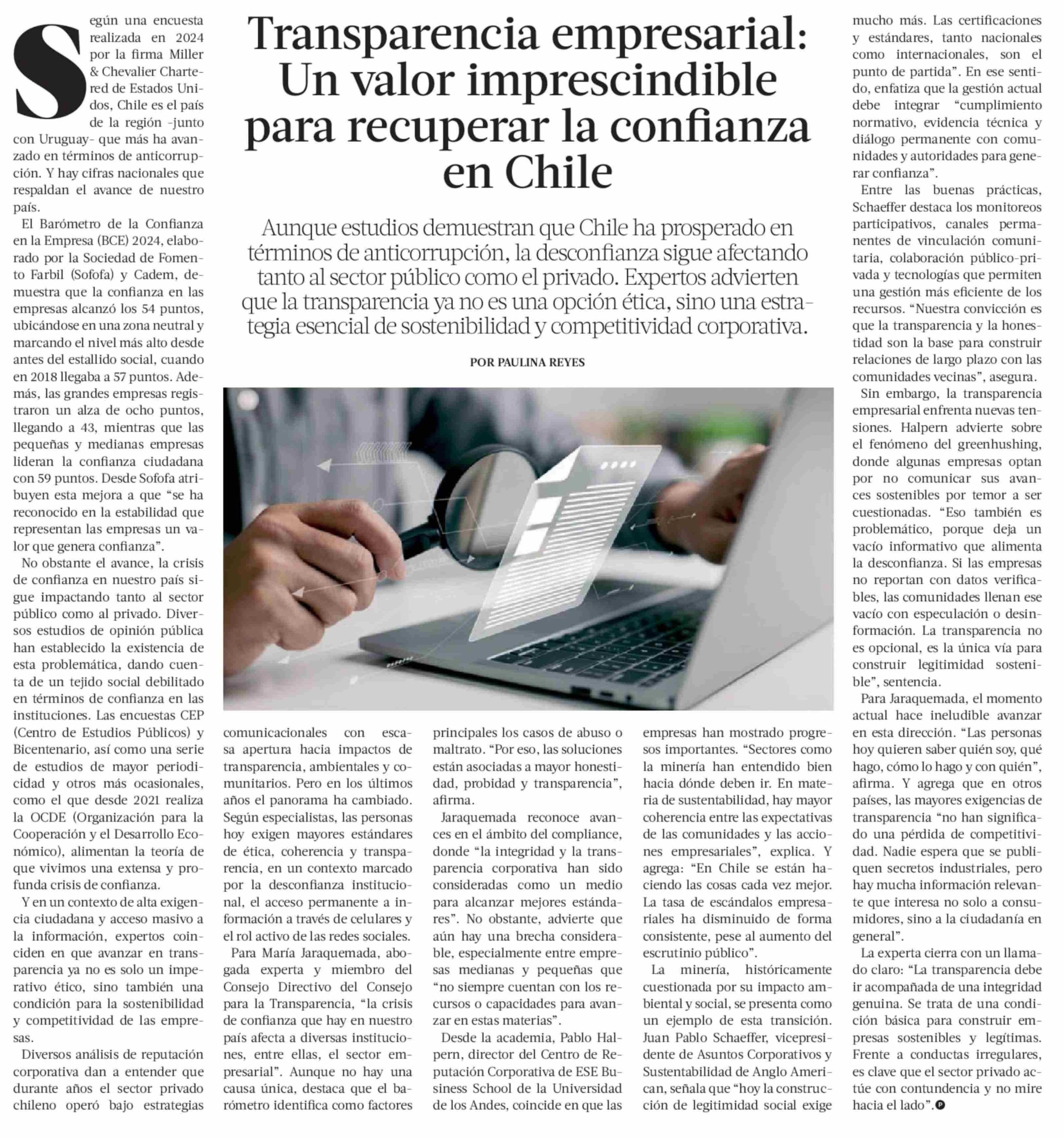 Transparencia empresarial: Un valor imprescindible para recuperar la confianza en Chile