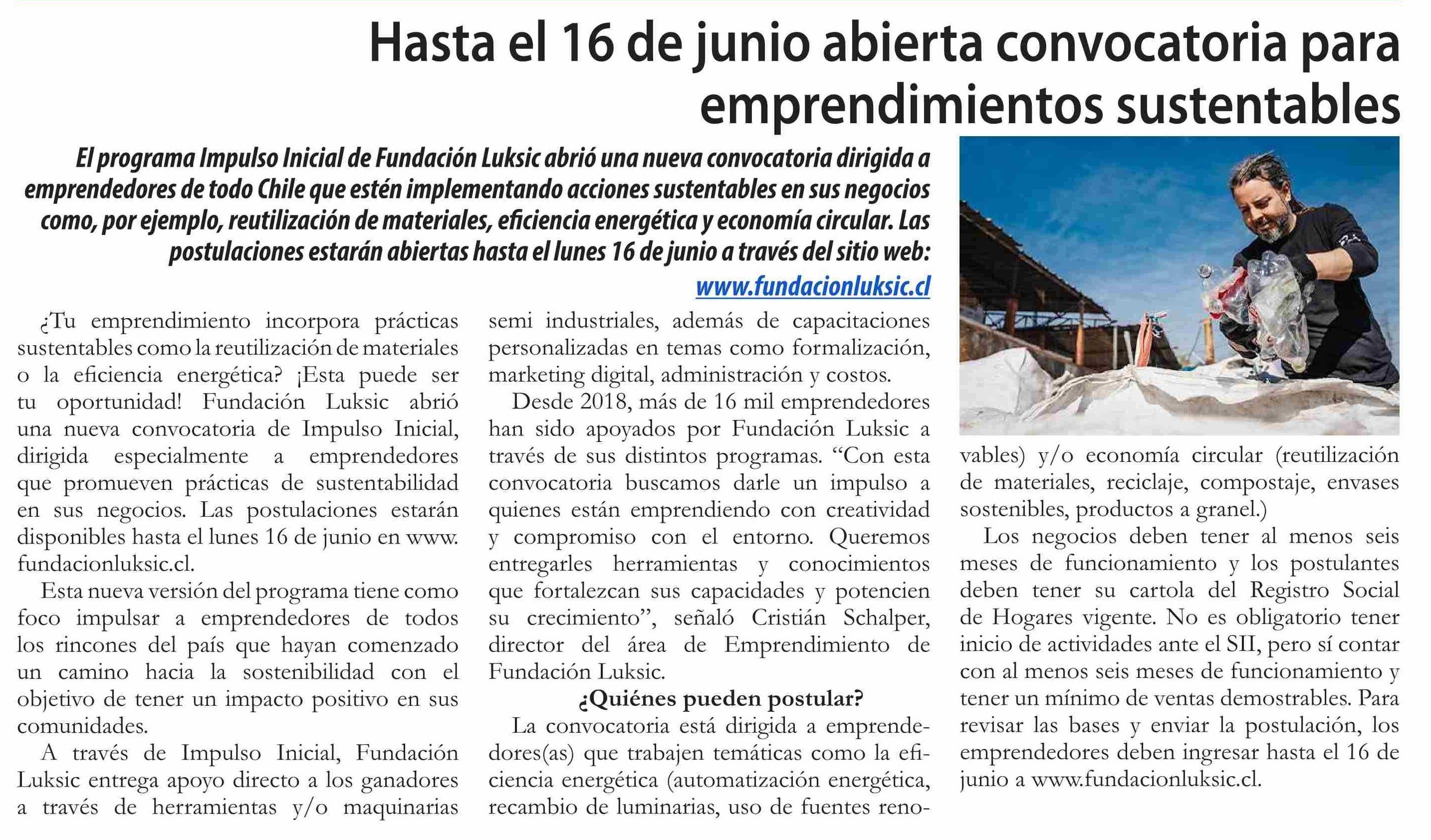 Hasta el 16 de junio abierta convocatoria para emprendimientos sustentables
