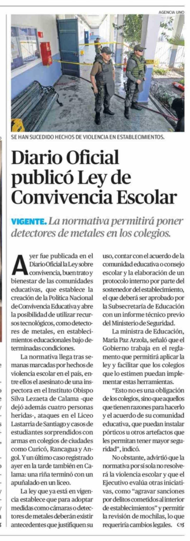 Diario Oficial publicó Ley de Convivencia Escolar